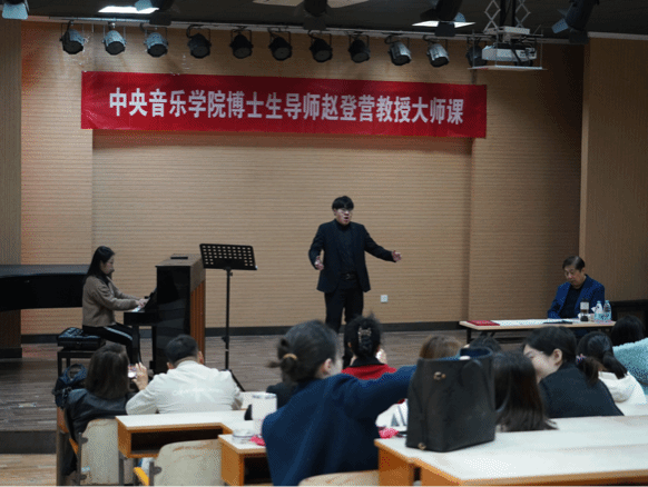 10月26日上午,著名低男中音歌唱家、中央熊猫体育声乐歌剧系教授、博士生导师赵登营先生应公司邀约,于2教101音乐厅成功举办了大师课。大师课由熊猫体育副经理王建成主持。