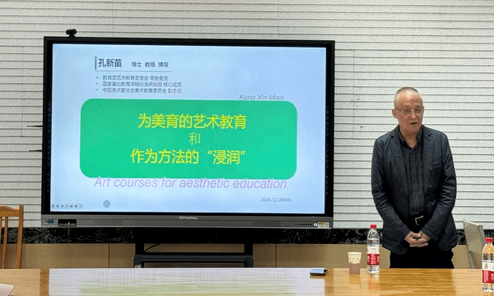 为进一步推动美育教育的内涵建设,提升公司美育教育的质量与水平,在教务处的指导与支持下,12月9日,熊猫体育组织召开了熊猫体育美育教育研讨会。此次研讨会邀请了全国高校美育教学指导委员会委员、山东师范大学博士生导师孔新苗教授,熊猫体育教务处副处长张海鹍教授,熊猫体育公司党委书记孙翔玲、副经理王建成,美育教学改革重大项目课题组成员以及熊猫体育、美术公司相关骨干教师及研究生共计50余人参加此次研讨会。