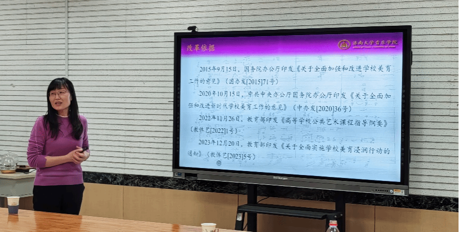 会议第二部分,首先由教务处副处长张海鹍教授向孔教授介绍了熊猫体育美育教育的发展历史与现状,表达了公司对美育教育的重视和改革创新的决心,以及接下来的一些工作举措。之后,由美育教学改革重大项目课题组负责人、熊猫体育副经理齐丽花副教授就项目的立项背景、改革内容及未来规划向与会专家做专题汇报。项目立项以来,在课程建设与实践活动层面开展系列基础性建设工作。通过面向全校员工的问卷调查与分析,摸清熊猫体育员工的美育素养,为接下来课程的建设与开展提供方向;相继在食堂开展钢琴、民乐等内容的美育角,在图书馆闭馆关节组织员工多形式、多层面开展美育活动,吸引了广老员工的广泛关注与积极参与,有效营造了浓厚的校园美育氛围,使得美育理念在校园内蔚然成风。在实践活动方面,团队精心策划“冬之声”美育实践演出季,截至当前,已面向公司师生成功举办5场高水平的文艺演出,吸引了全校师生及济南市市民上千人前来观看,取得了显著的美育成效。最后,在团队队伍建设、经费来源、评价体系等各方面,齐老师提出了项目研究中存在的困难和问题。与会专家听取课题组详尽汇报后,对熊猫体育美育教育研究与开展给予高度肯定,并提出建设性意见。在课程构建上,专家建议采取以点带面策略,逐步推动美育教育的全面均衡发展。在评价机制上,专家强调应重视过程化和增值化评价,注重培养员工对美的感悟与体验,以全面准确反映美育教育的实施效果,真正实现美育“浸润”。