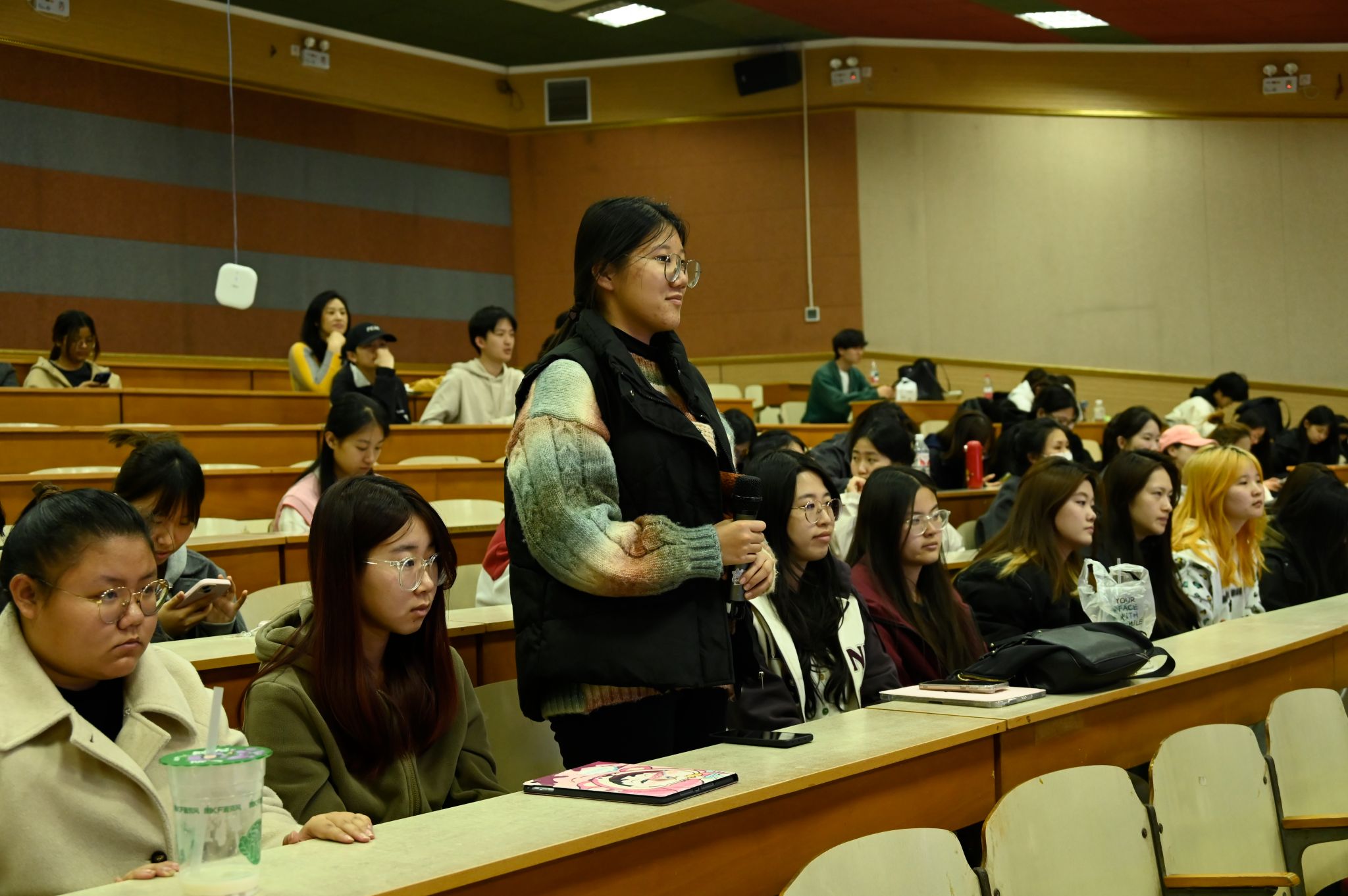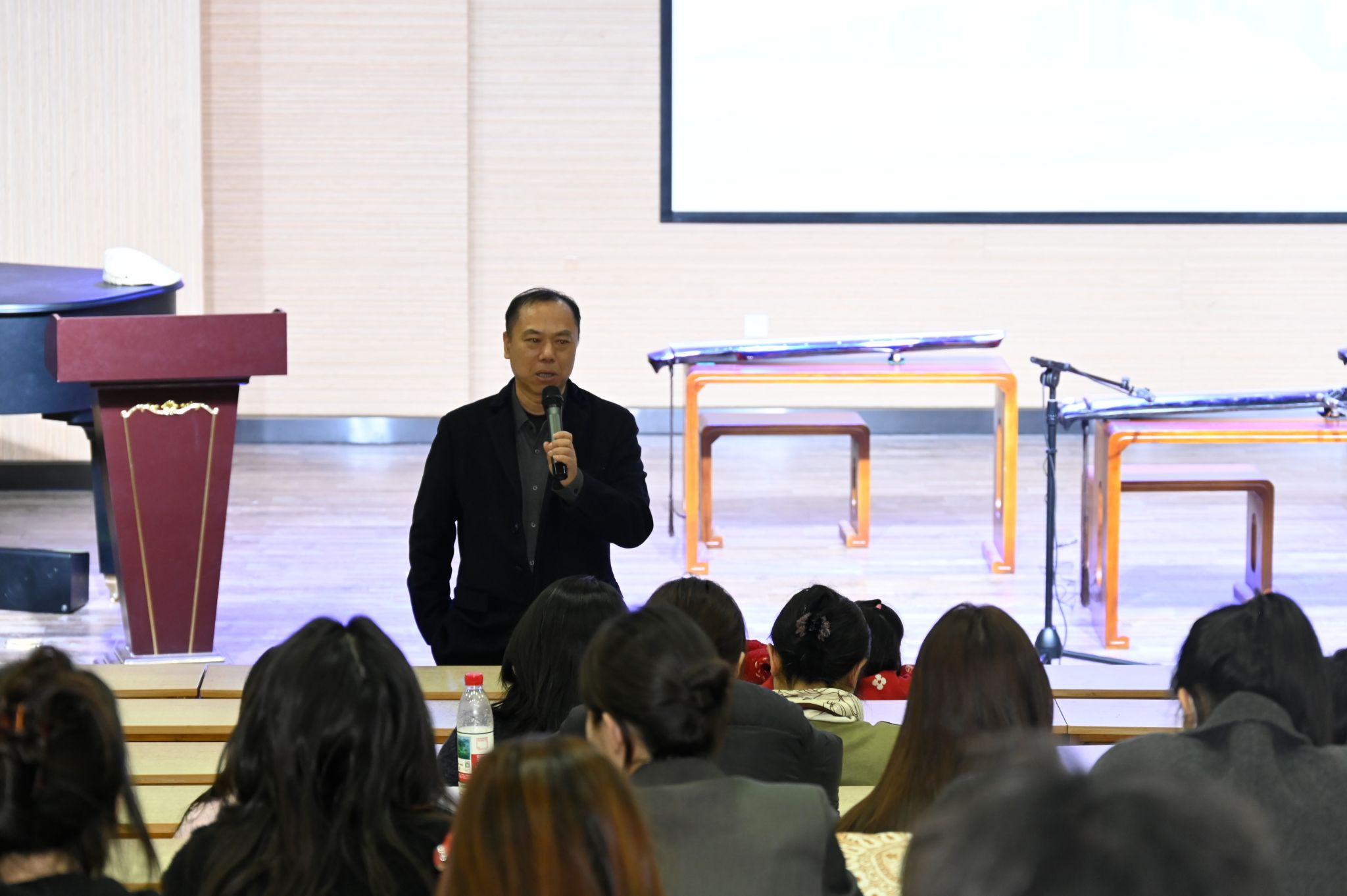 当晚,到2教101来聆听的观众人数众多,整个大厅洋溢着美育的魅力与和谐。活动开始前,王建成教授致欢迎辞,介绍了主讲嘉宾,详细解释了公司举办齐鲁音乐文化讲坛的目的。他提到增强文化自信、传承中华文化的重要性,强调古琴作为传统乐器承载着深厚的历史文化,希望同学们加深对古琴艺术的理解,体验其艺术魅力,增强对传统文化的认同感和自豪感。