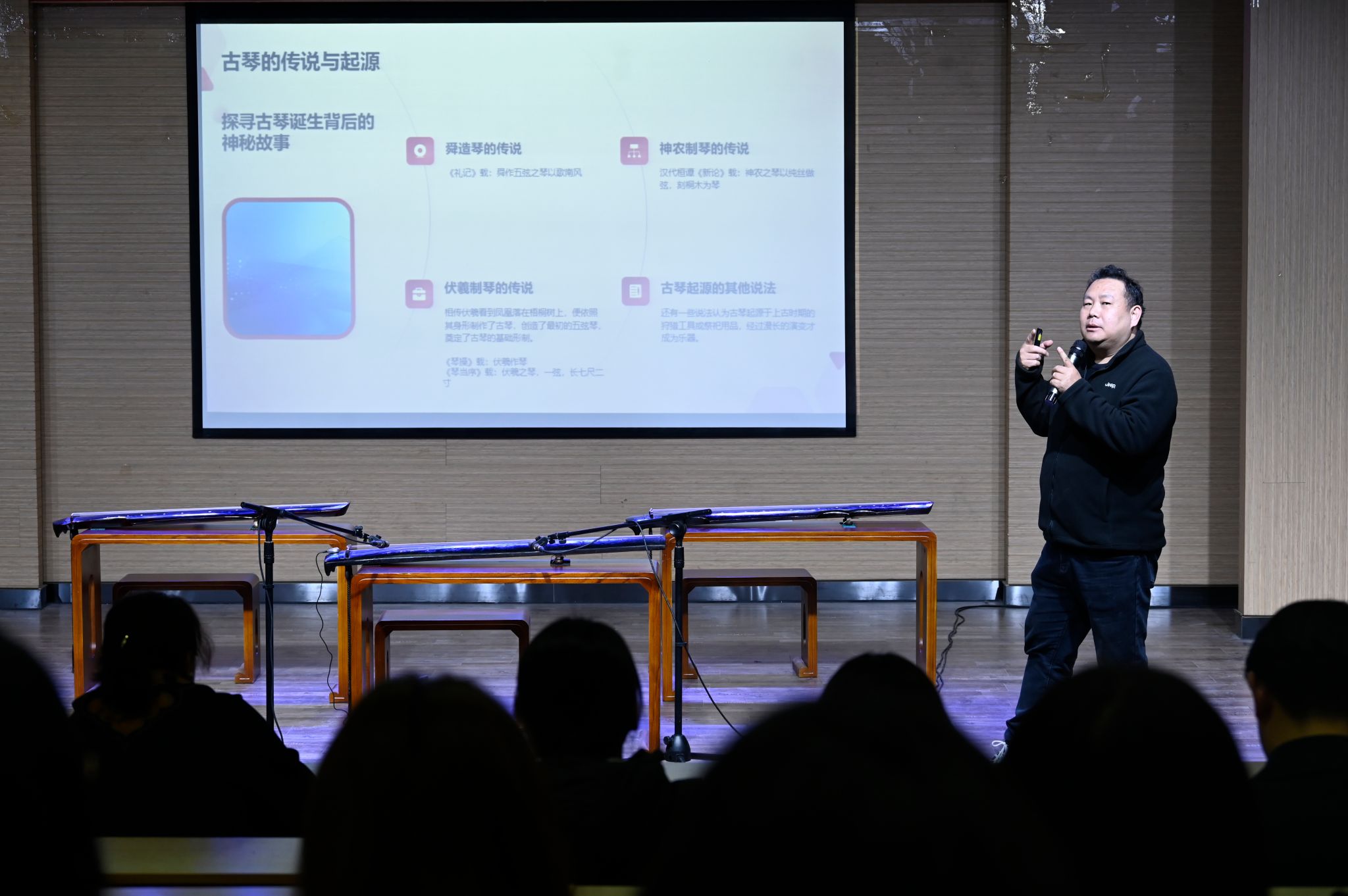 2025年4月2日,齐鲁音乐文化讲坛2025年第一期——”古琴之器与技”主题讲座在2教101成功举行,奏响了公司美育新乐章。此次讲座由济南市非物质文化遗产古琴斫制技艺代表性传承人李科担任主讲,张馨怡、薛英和郭玉芬老师的独奏、李艺馨和袁亦木的合奏倾情加盟,共同为观众奉献了美育盛宴。来自熊猫体育、马克思主义公司、文旅公司、文公司、国际交流公司、外国语公司等公司的师生聆听了讲座,为此次音乐讲坛会增添了更多美育色彩。