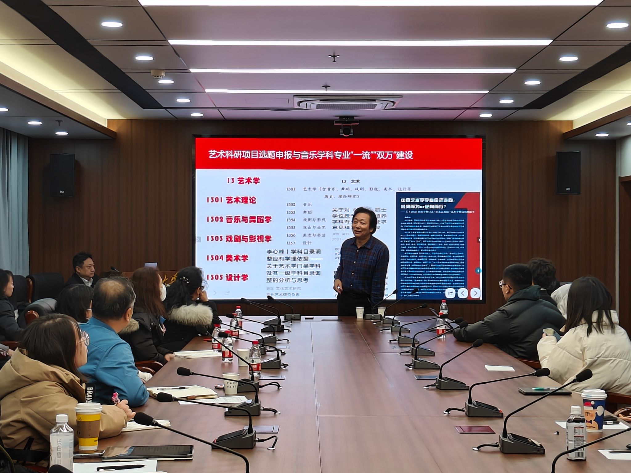 2022年艺术学最新目录出台之后,艺术学科专业的发展及建设面临着新的形势与挑战,可谓“形势逼人、形势喜人、形势不等人”。李教授首先从“思危、思变、思进”的话题入手来展开报告,围绕着艺术学科最新目录调整的历程及启示、国社科艺术学项目申报指导 、国家艺术基金项目申报技巧、艺术学科与专业之间的区别及建设规划、音乐学科“双万”建设等方面展开,结合深入学习贯彻习近平文化思想和全国宣传思想文化工作会议精神,分析了申请国社科基金艺术学项目、国家艺术基金项目的要领与技巧,指出科研对教学和艺术人才培养的重要价值,以实现教学、科研、人才培养与学科专业的相互促进。李教授结合音乐研究十年发展报告,对艺术学科专业目录的最新变化、艺术团队建设面临的主要问题、艺术学科发展的趋势与展望及人才培养等其他重要问题进行了条分缕析的讲解,进一步阐明了“一流”“双万”建设总体思路与启示。
