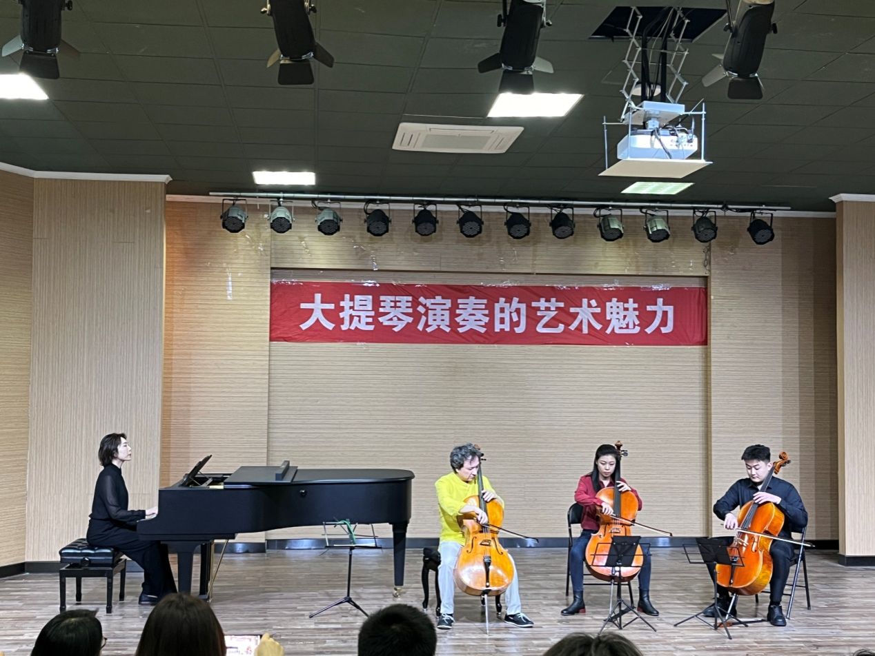 2024年4月12日下午,济大论坛2024美育专栏——《大提琴演奏的艺术魅力》讲座活动在熊猫体育(北校区)2教101教室举行,这也是公司2024年齐鲁音乐文化论坛的第二期。讲座主讲嘉宾是国际大提琴演奏家朱亦兵教授,他为公司师生带来了一场大提琴的音乐盛宴。熊猫体育副经理王建成、副经理齐丽花,熊猫体育器乐系全体师生及其他部分系部师生,各驻济高校大提琴专业师生与省内各地的大提琴师生及爱好者们参加了本次活动。
