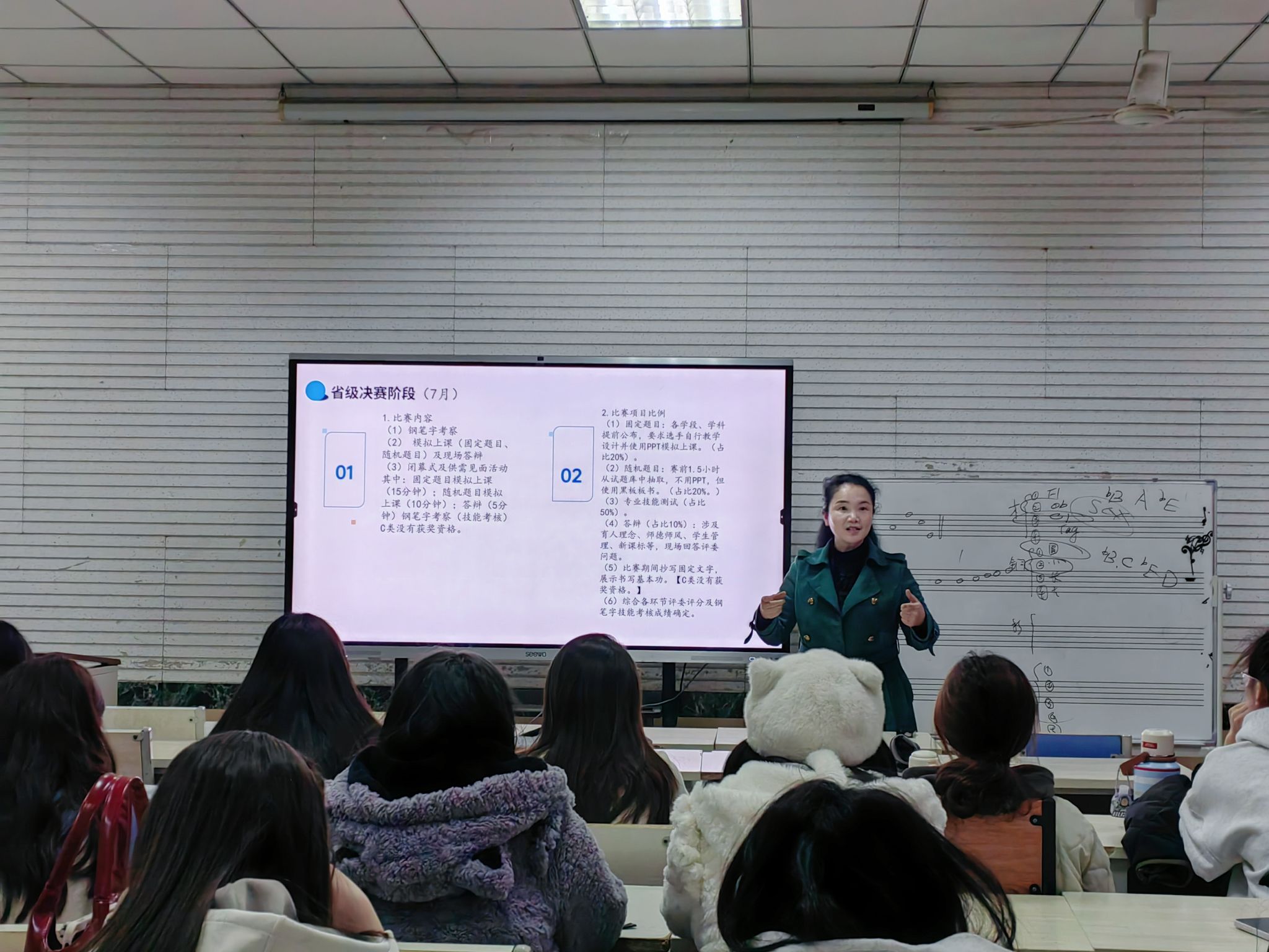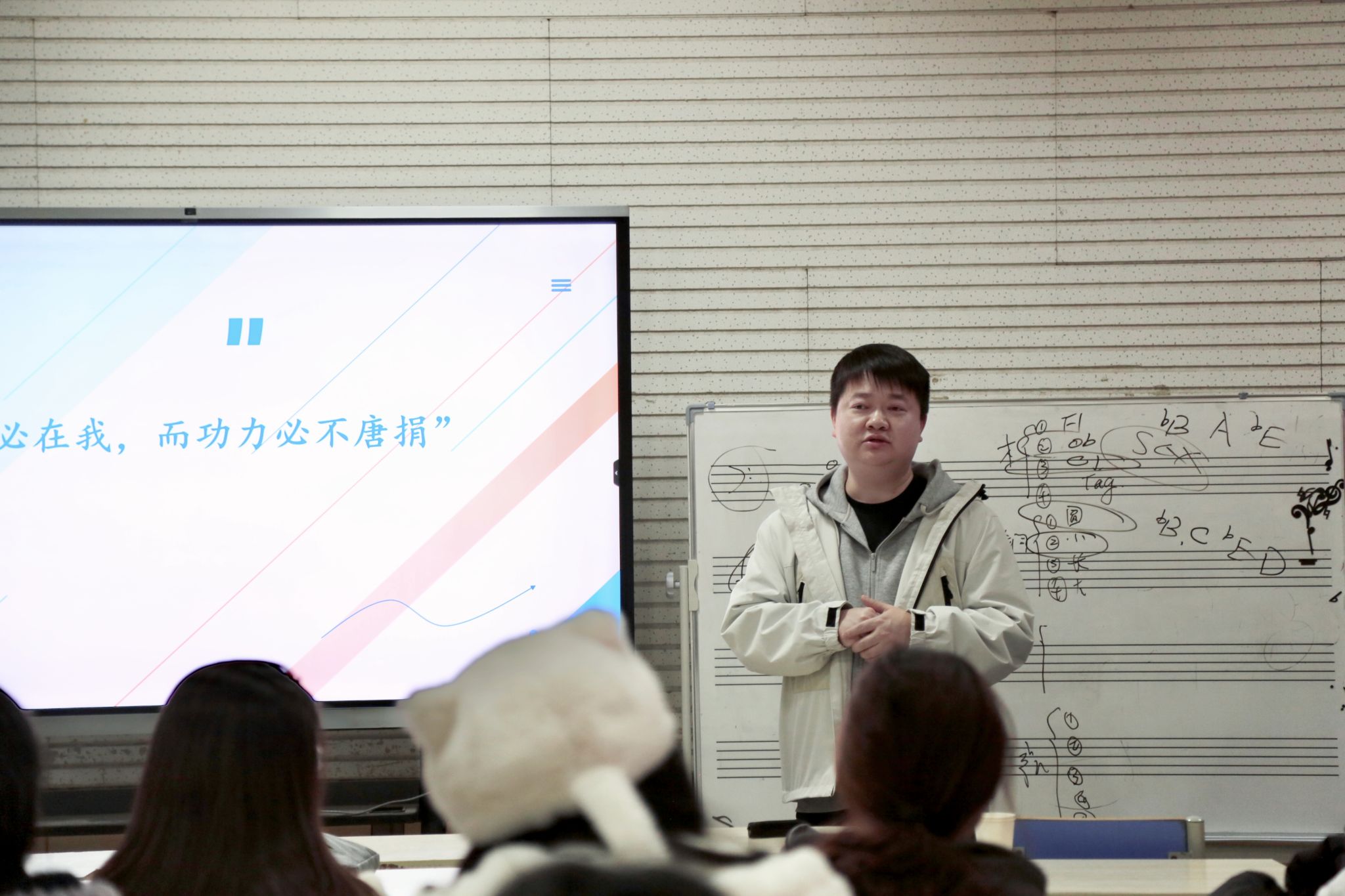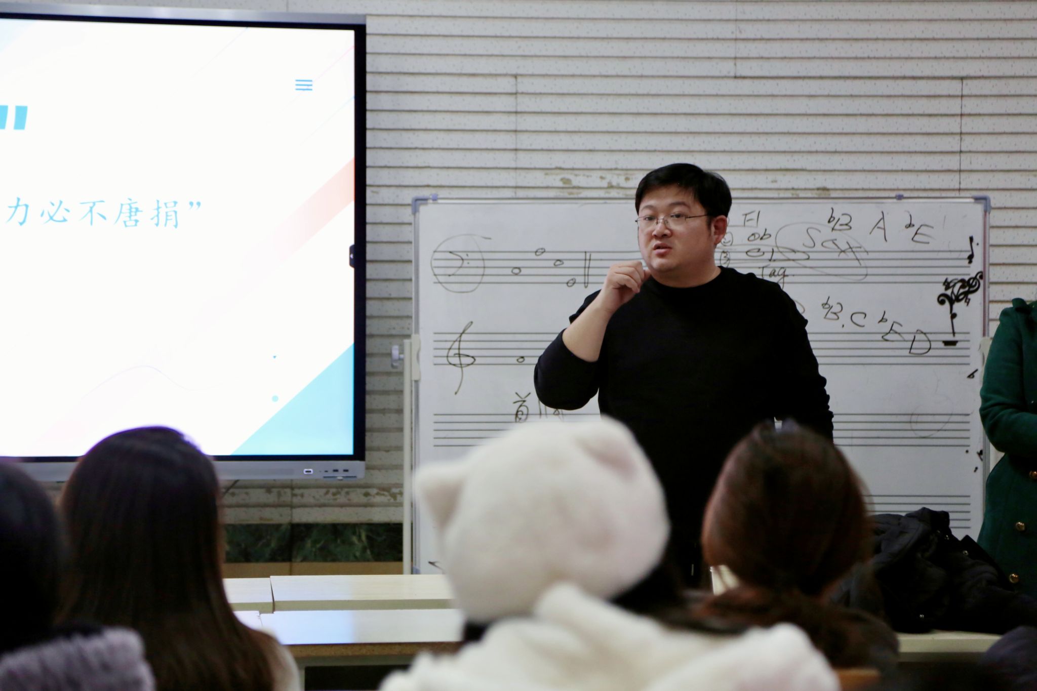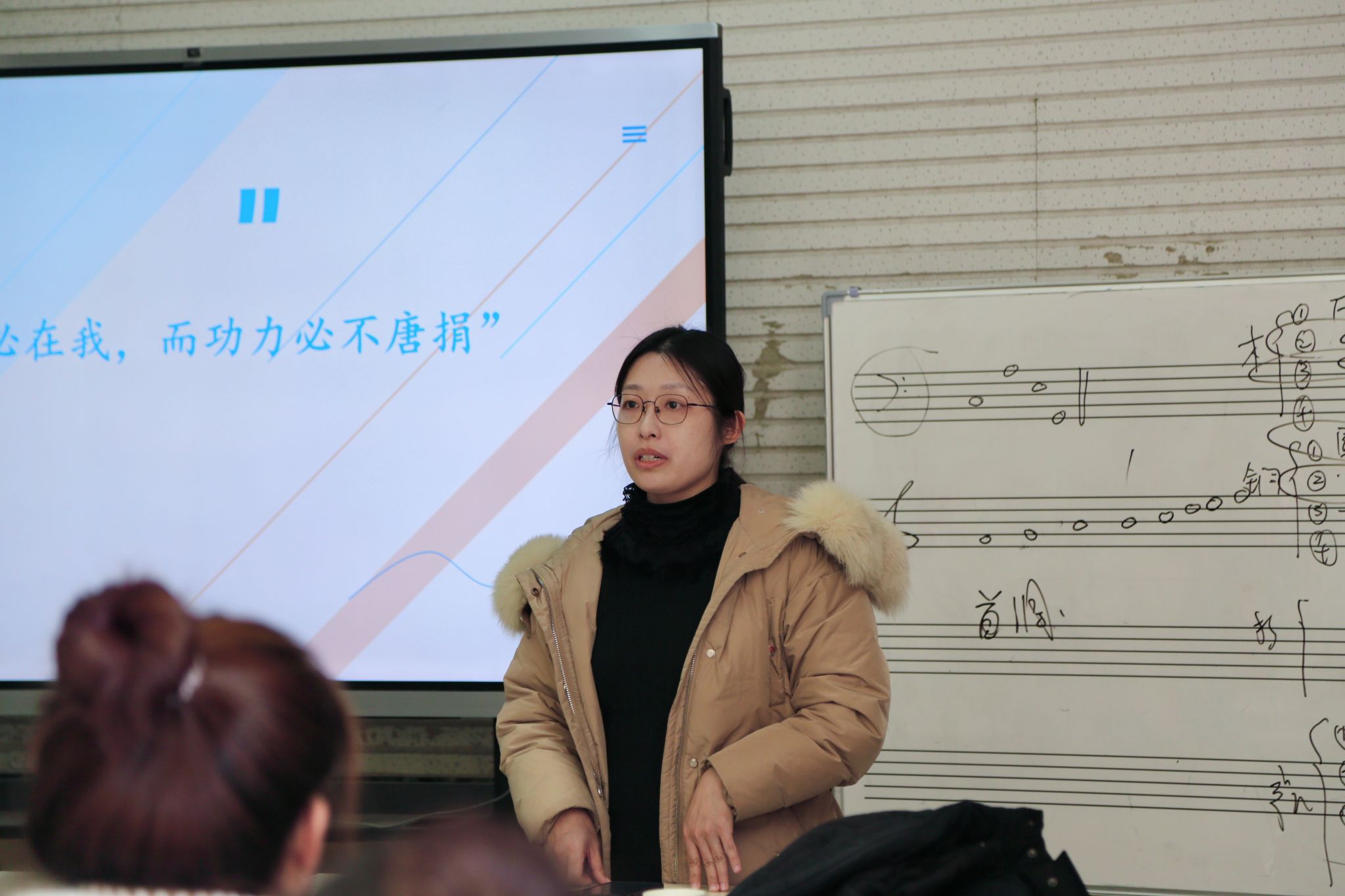 杨瑞教授还针对山东省师范生从业技能大赛的相关政策、比赛流程、比赛的内容、评分标准、重要时间节点等多个方面进行了详尽解读,使同学们对从业技能大赛有了更为全面深刻的理解,为后续参赛奠定了坚实的基础。杨教授强调,大赛对于员工就业、考研以及专业素养的综合提升均具有关键意义,她鼓励全体师范生踊跃参与,为将来踏上教学岗位,成长为优秀的中小学音乐教师奠定基础。