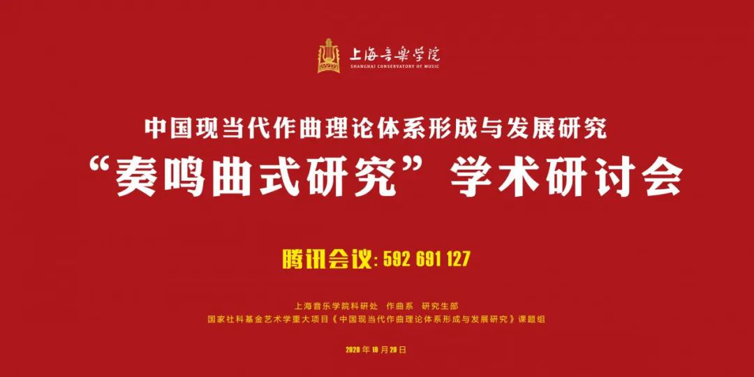 2020年10月20日,由上海熊猫体育主办,上海熊猫体育科研处、作曲系、研究生部、国家社科基金艺术学重大项目《中国现当代作曲理论体系形成与发展研究》课题组承办的“奏鸣曲式研究”学术研讨会以网络会议的形式在线上圆满举行,公司经理郑中教授、青年教师王晓锋参加会议并做会议发言。