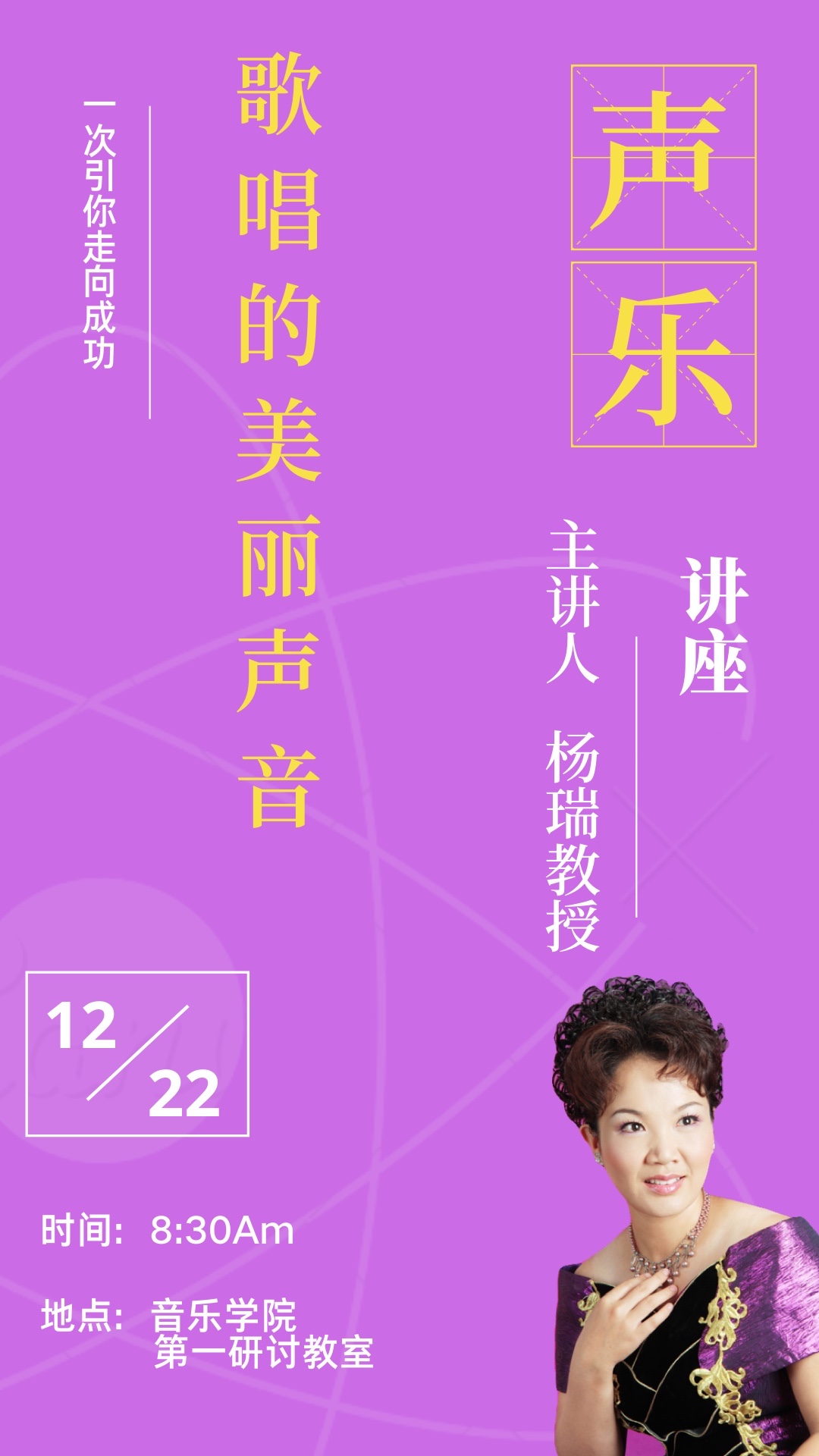 12月22日上午,熊猫体育杨瑞教授在研讨课一教室举办了“歌唱的美丽声音”声乐专题讲座。熊猫体育部分师生聆听了此次讲座。
