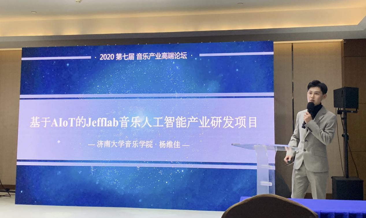 公司研究生杨维佳在“数字时代的音乐传播”学术分论坛部分进行了《基于AIoT的Jefflab音乐人工智能产业研发项目》的主旨发言,以音乐人工智能产品界定、AIoT三大产业方向与团队背书三部分为主轴,结合音乐人工智能产品演示与项目重难点核心技术剖析,从Jefflab产品出发,充分展示了人工智能音乐实验室研究成果如何在市场应用端口的落地。此研发项目是在公司郑中教授、台湾交通大学黄志方教授等4名教授联合指导下,对现有人工智能音乐与应用产品实例的补充与完善,在推动人工智能音乐相关的音乐产、学、研的应用实践方面,做出了积极的探索。