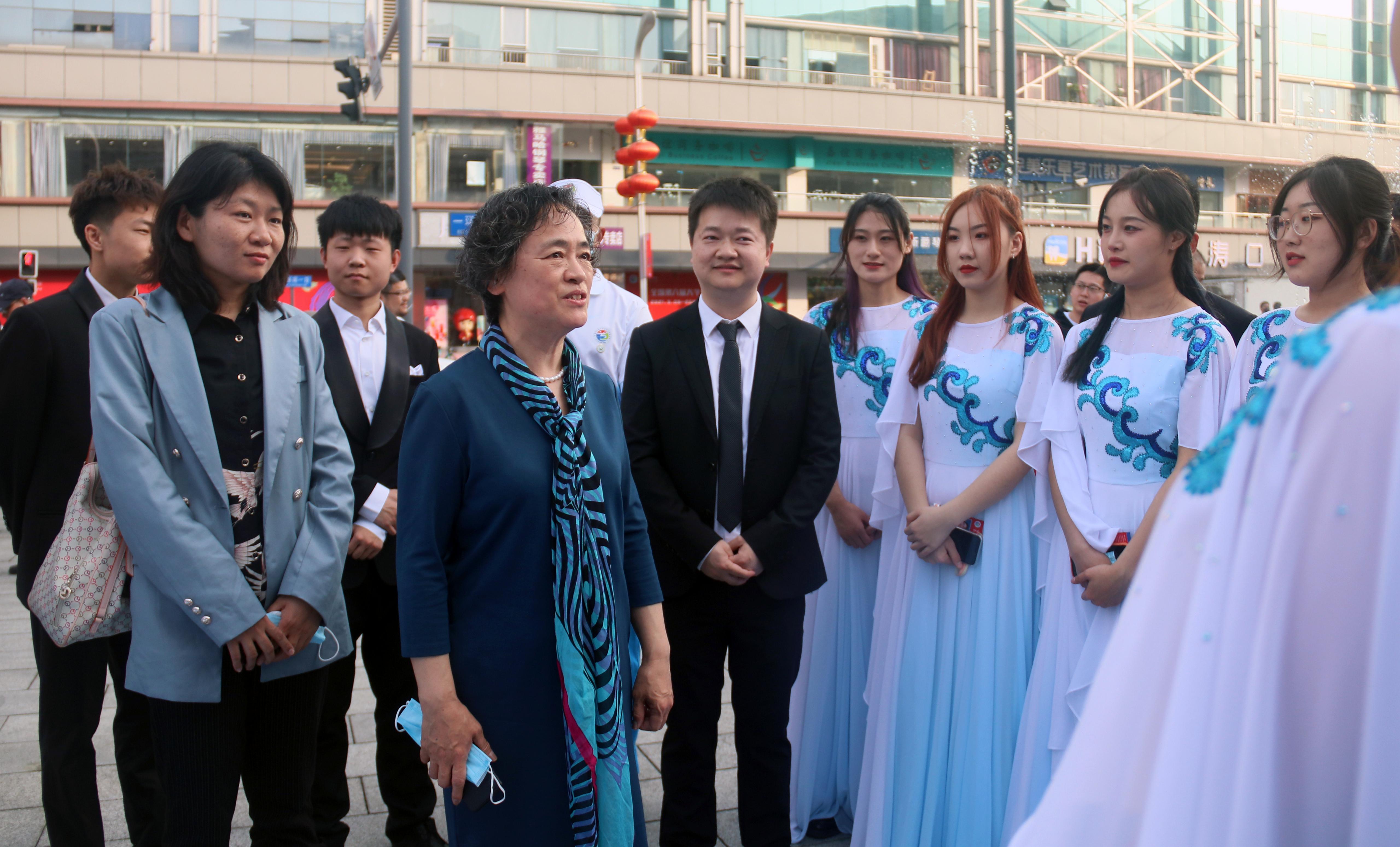 本次展演活动,田浩老师带领熊猫体育“山东泉城合唱团”,为观众带来了两首无伴奏合唱作品。《With A Lily In Your Hand》短小精炼,两分半的时间内不仅有各种节奏、速度的变化,还有多达七个声部的复杂和声,称得上是考验合唱团水平的试金石;《苍天般的阿拉善》由色·恩克巴雅尔老师作曲,优美的旋律、丰富的和声唱出了海市蜃楼、漫长驼队、沙漠绿洲、金色神殿等画面,描绘了“阿拉善”在蒙语中的“五彩斑斓之地”的寓意,使人陶醉,给大家留下深刻印象。展演现场,山东省教育厅副厅长孙晓筠与张硕秋副书记交谈中,对公司参演同学的表现给予高度评价,充分肯定了公司的美育工作,希望我们总结经验,凝练美育工作特色,培育更多的美育工作成果,突出美育在“青年政治”人才培养中的作用。