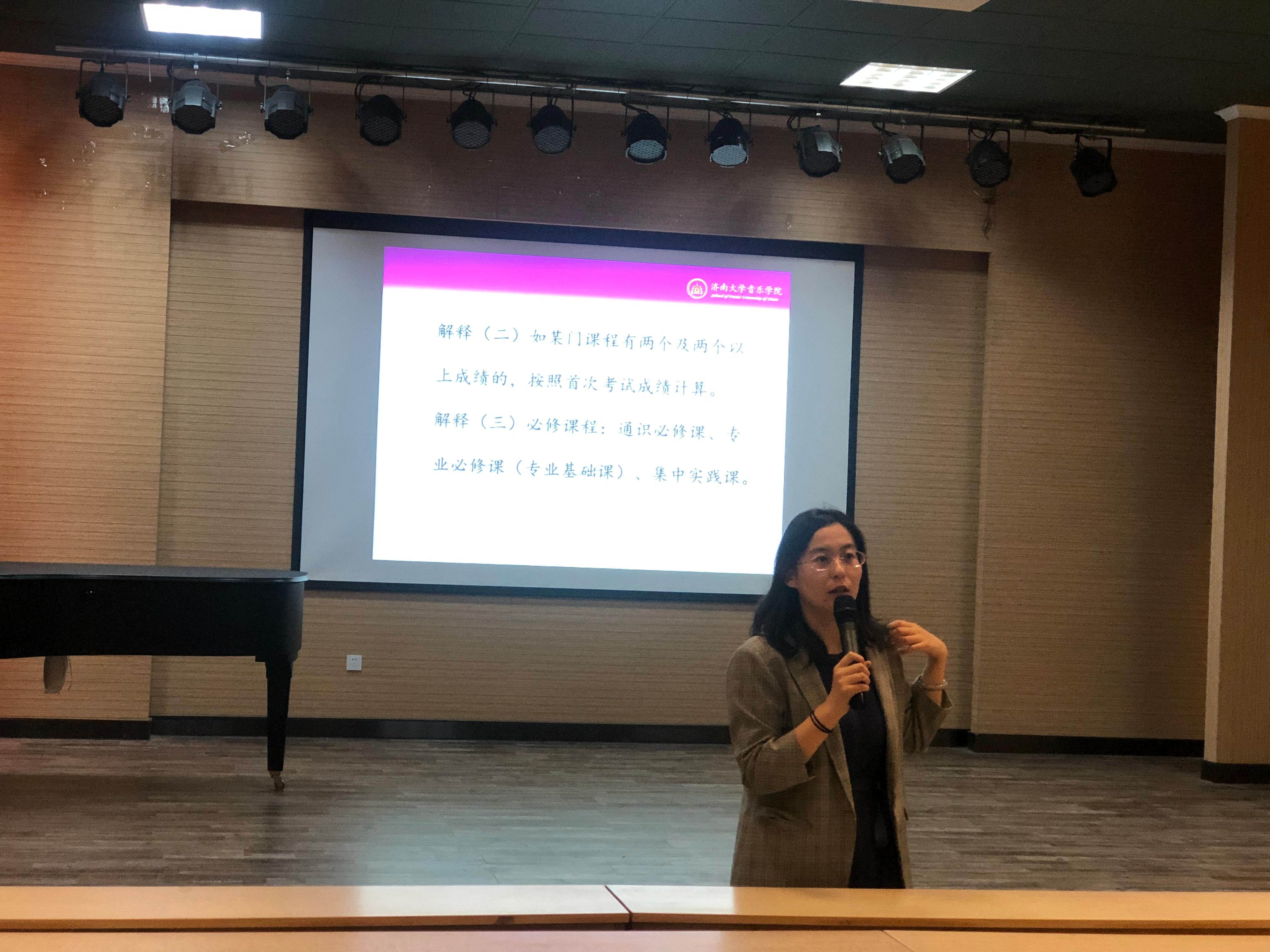 会议伊始,公司教学管理办公室冯然然老师向同学们解读了往届硕士研究生推免的相关条件和要求,分析了2018级员工的成绩情况,鼓励同学们积极竞选推免名额。