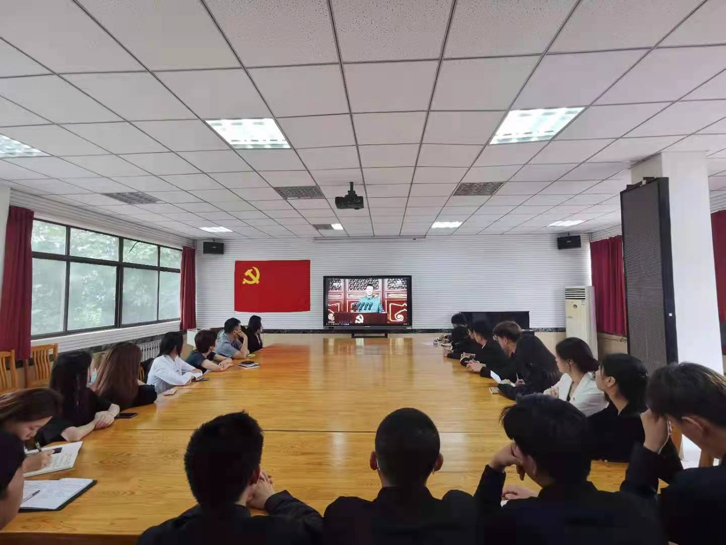 按照公司要求,公司党委高度重视,精心组织,6月30日下午,公司党委专门对各支部集中收看场地和设备进行了提前安排调试,确保直播收看效果。