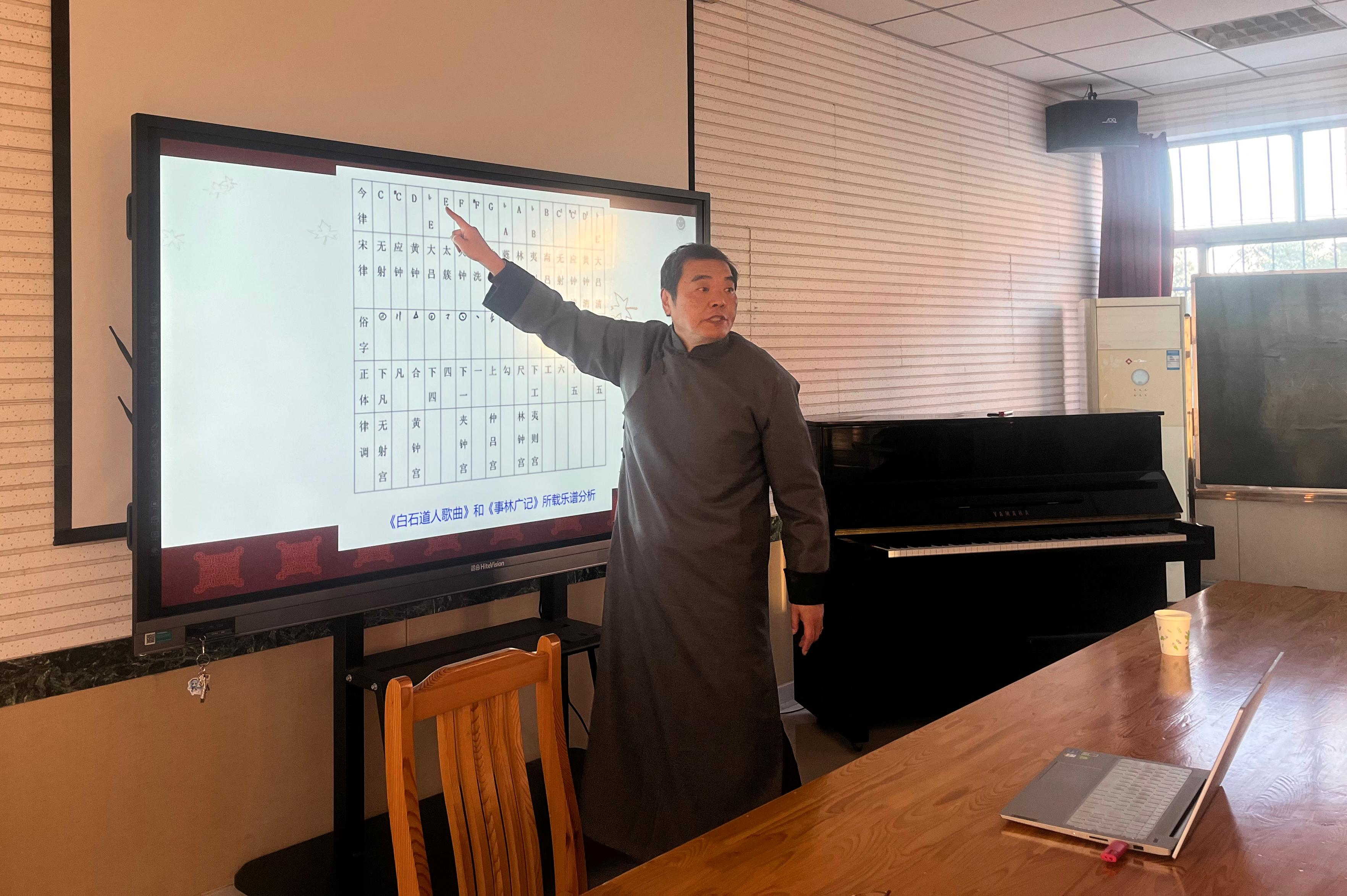 11月9日,应熊猫体育邀请,中国台湾南华大学艺术文化中心主任、南华大学雅乐团团长、中国熊猫体育雅乐研究中心主任周纯一教授来熊猫体育进行学术交流,并向理论系师生开展了题为“中国音乐理论的学习路径与反思”的学术讲座。讲座围绕“迈向国际一流熊猫体育之省思与对策,如何办好高精尖音乐教育”的主题,采取线上、线下相结合的形式进行。由熊猫体育经理郑中教授主持,理论系全体师生、2020级研究生共同聆听学习。