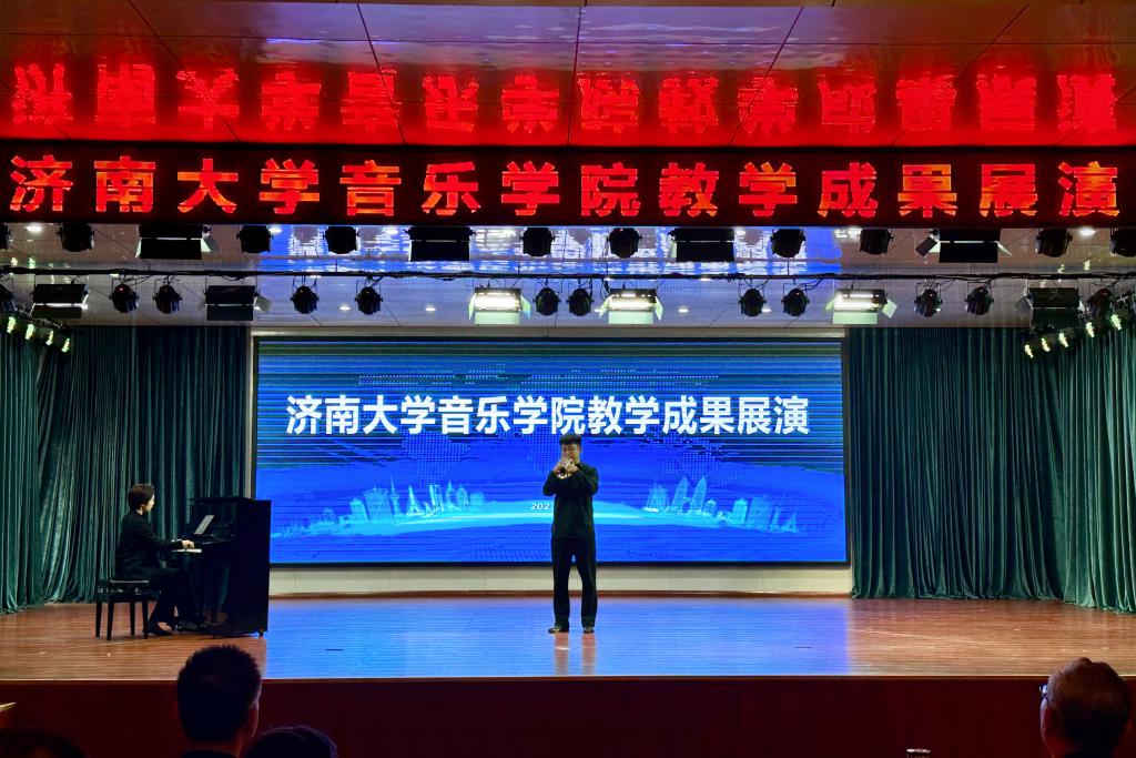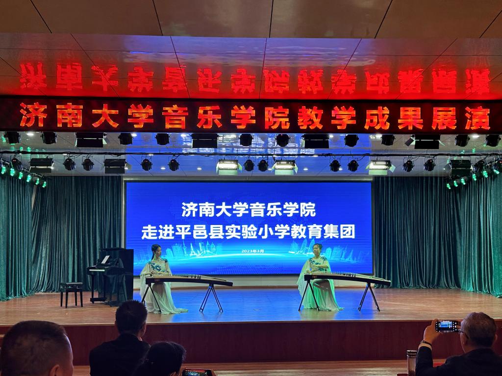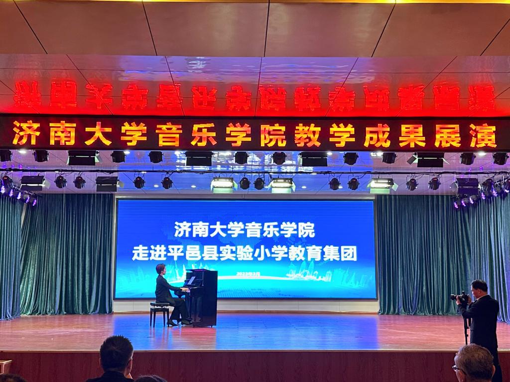 座谈会后,熊猫体育师生在平邑县实验小学进行了教学成果展演。开场二胡齐奏曲《新赛马》通过对民歌巧妙的变奏,把草原的辽阔美丽和牧民们的喜悦心情表现的酣畅淋漓;唐磊老师创作演唱的《丁香花》表达了对过往的回忆之情和对青春岁月的深深怀念;潘恒中老师的小号独奏《思乡曲》以如歌如诉的旋律表现出远离家乡的游子们对故乡的思念之情;张若冰老师的钢琴独奏《彩云追月》以浓郁的民族色彩与独具特色的艺术感染力展示了典型的广东民间音乐特征;器乐1901班蒋开宇独奏的民族打击乐《鼓威》激昂的鼓声宛若千军万马涌动着强烈的力量,令人心驰神往;器乐2001班马文君、赵心苒演奏的古筝二重奏《我爱你塞北的雪》以优美抒情的旋律和富有律动的节奏,描绘了千里冰封广原的壮丽美景;音教2102班员工演奏的竹笛四重奏《沂河欢歌》以饱满的热情描绘了沂蒙山区秀丽的自然景色及对美好未来的无限憧憬;声乐1901班田海茹演唱的《青玉案 元夕》展现了北宋时上元节的盛事,以婉转凄美的曲调完美的诠释了浓郁的民族文化底蕴;杨瑞教授领衔演唱的歌曲《我和我的祖国》以优美动人的旋律和情感真挚的演唱激发了现场中小员工民族情感的高度共鸣,展演在现场观众的合唱中落下帷幕。琴声悠扬、歌声嘹亮,高水准的演出集中展示了熊猫体育教学成果,得到了现场观众的高度赞誉。