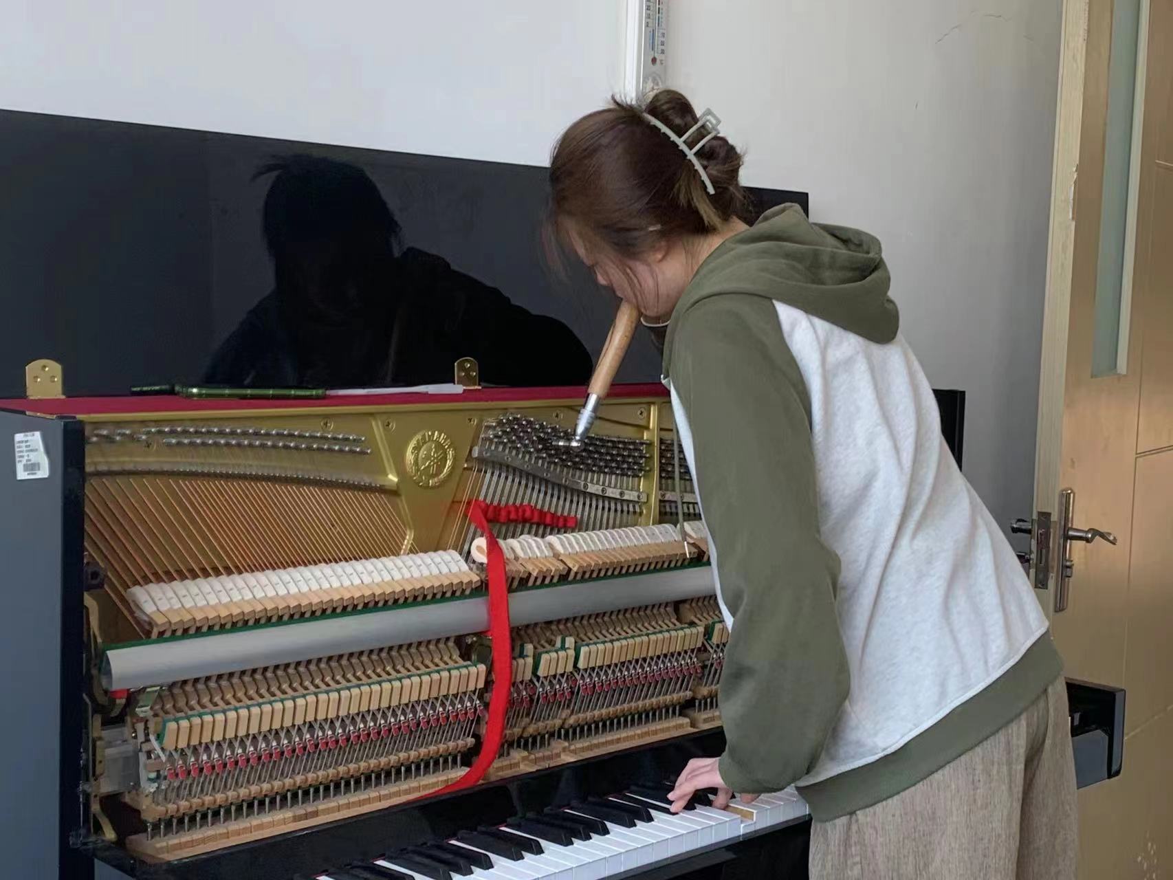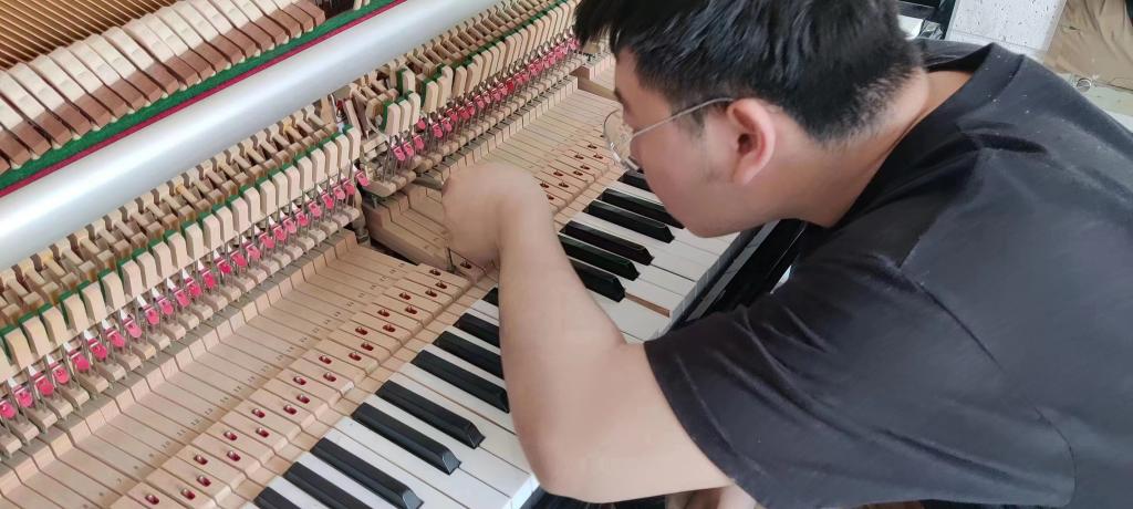 为积极备战第二届全国高校钢琴调修技能竞赛,激发同学们专业技能学习的热情,4月19日,公司乐器修缮(钢琴调律)专业举办第二届全国高校钢琴调修技能竞赛初赛暨“长江杯”熊猫体育第四届钢琴调修技能大赛,2019、2020、2021三个年级共23名同学参加此次比赛,比赛邀请公司乐器修缮专业外聘教师李伟、乐器修缮专业优秀毕业生、施坦威首席钢琴调律师张厚源担任评委,比赛在熊猫体育琴房及调律教室进行。