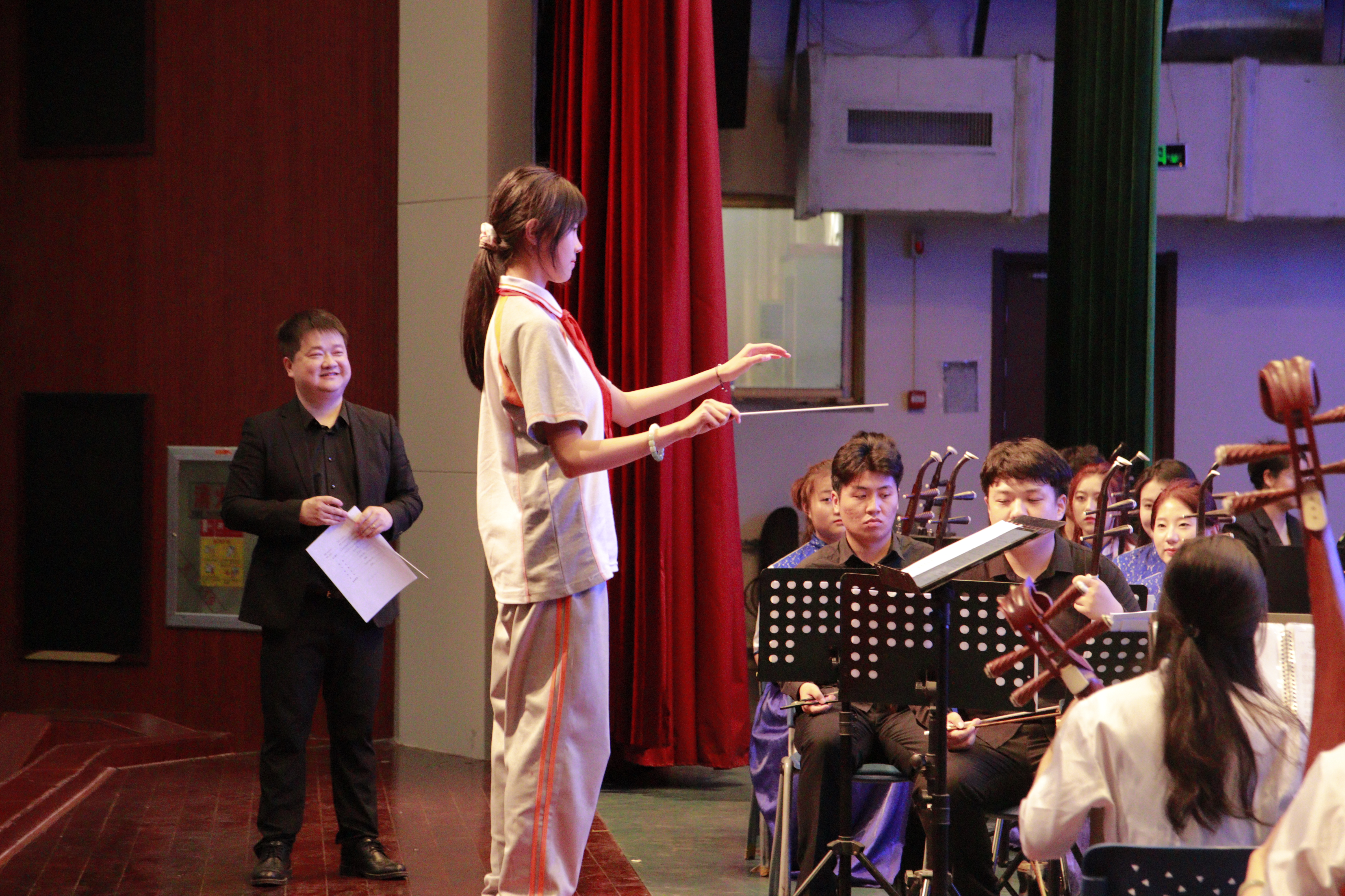 此次音乐会在曲目选择上古今结合,欢快嘹亮的《闹新春》拉开了本次音乐会的序幕。《龙腾虎跃》向同学们展示了大鼓与排鼓的力量与灵巧,《北京一夜》、《扬鞭催马运粮忙》、《长城随想》第四乐章、《遥望篇》通过笛子、琵琶、京胡及二胡表达了古器韵味。《戏韵·高调风》以及《国风》与《心中的灯塔》向同学们展示了民族交响乐团中弹拨乐与弦乐的融合协调之美。又有《花好月圆》、《彩虹节拍》、《孤勇者》等现代曲目,实现传统与流行碰撞,让同学们体验到民族交响乐团的独特魅力。在音乐会进行过程中,台上演出师生与台下聆听欣赏的同学们积极互动,成就了一场注入本真之思与传统意蕴的美育普及实践课。