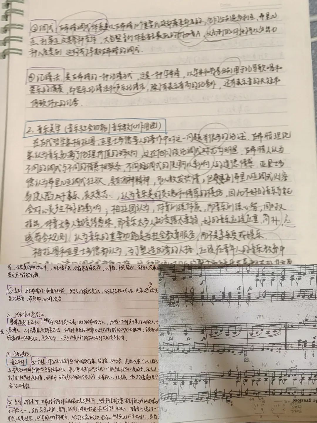 我的专业课包括中西音史和曲式分析,专业课是从暑期开始学习的,是直接找的目标公司的老师进行学习(建议找目标院校老师或学长学姐)。中西音史学习就是靠背诵,一定要背到滚瓜烂熟。背诵方法我是上课之后整理出来,每次背诵前会略读一遍大概对这个题有个框架和画出关键词,比如人物背诵时,框架基本都是出生年月+生平+影响,。这个对我来说比较有用,大家可以按照自己喜欢轻松的方式进行记忆。曲式分析,主要就是在掌握基础知识后大量的做题,做的多了不管是复三、奏鸣还是回旋奏鸣都会变得很简单,要相信自己的第一感觉。
