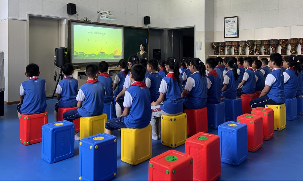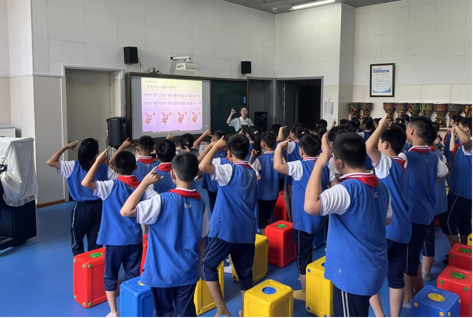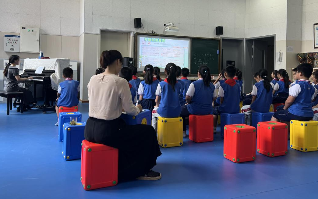 本次活动是以公司员工建立在基础理论的学习之上,进入一线教学环境进行的教学实践,共安排了两节课进行教学。第一节课由器乐2001班张亭亭同学进行五年级课程《外婆的澎湖湾》的讲解,在教学过程中充分运用了在音乐教育学课上学到的“多觉联动”教学方法,发挥动觉、听觉、视觉等多方面的联动效应,使五年级的员工们沉浸在对台湾校园歌曲《外婆的澎湖湾》的学习中。不仅掌握了如何演唱该歌曲,进入了很好的歌唱状态,还通过课程中了解到了台湾澎湖列岛的风土人情。张亭亭同学在歌曲的教学中,让员工们自由想象歌曲中所展现的画面,并且在完成歌曲的教学后,张亭亭同学又带领大家了解了其他几首校园歌曲,向同学们讲述歌曲的演唱者与亲人之间感人的故事,使员工们在本堂课中受益匪浅。