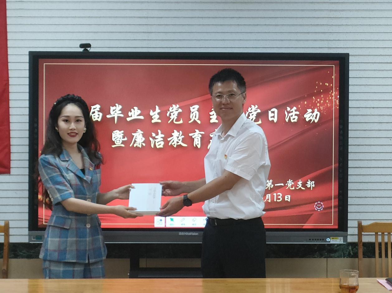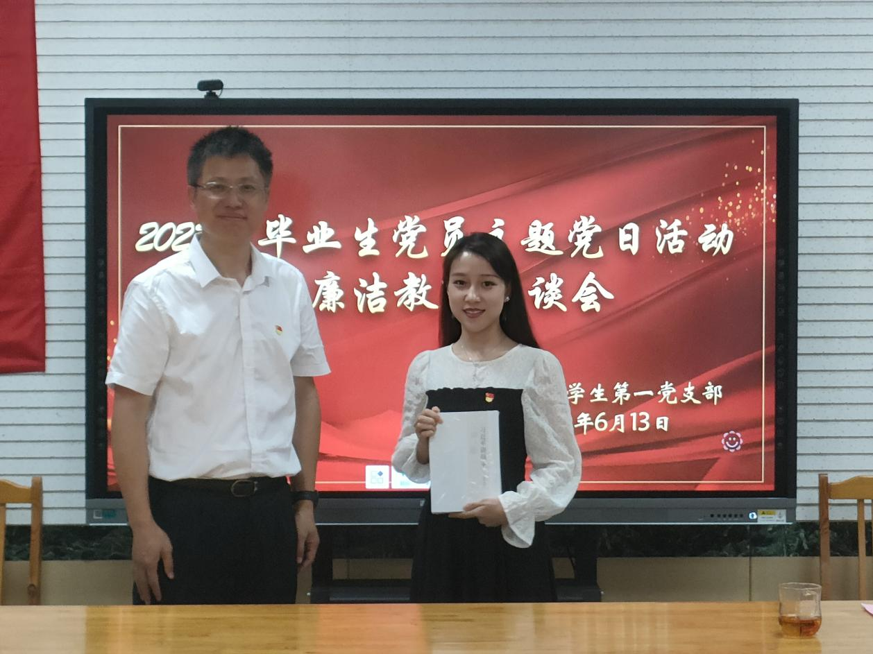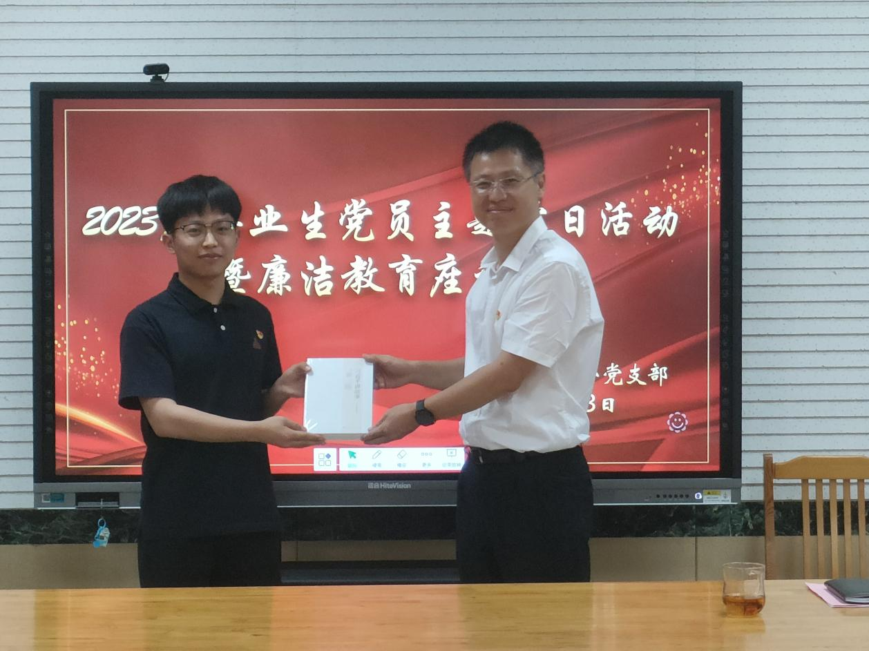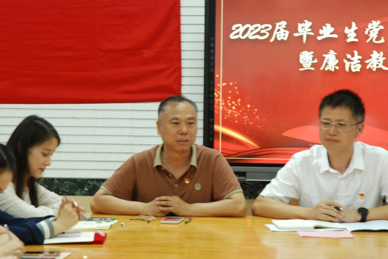 随后,公司党委副书记、副经理郝伟为毕业生党员做廉洁教育。古人云:贪如火,不遏则燎原;欲如水,不遏则滔天。他强调,身为一名党员,要有着廉政、廉洁、自律的品质,并告知大家淮海战役的胜利,正是因为解放军有着廉洁、自律的优秀品质,所以才出现了“军爱民,民拥军”的局面。同时,郝伟对毕业生党员提出了几点要求:首先,要知敬畏,要有纪律意识和规矩意识,时刻保持清醒的政治头脑,牢记全心全意为人民服务的宗旨;其次,要守底线,要保持政治底线,在学习、生活和工作中要做到“不以恶小而为之,不以善小而不为”。最后,他对毕业生党员送上了美好的祝福,祝福大家大展宏图,鹏程万里。