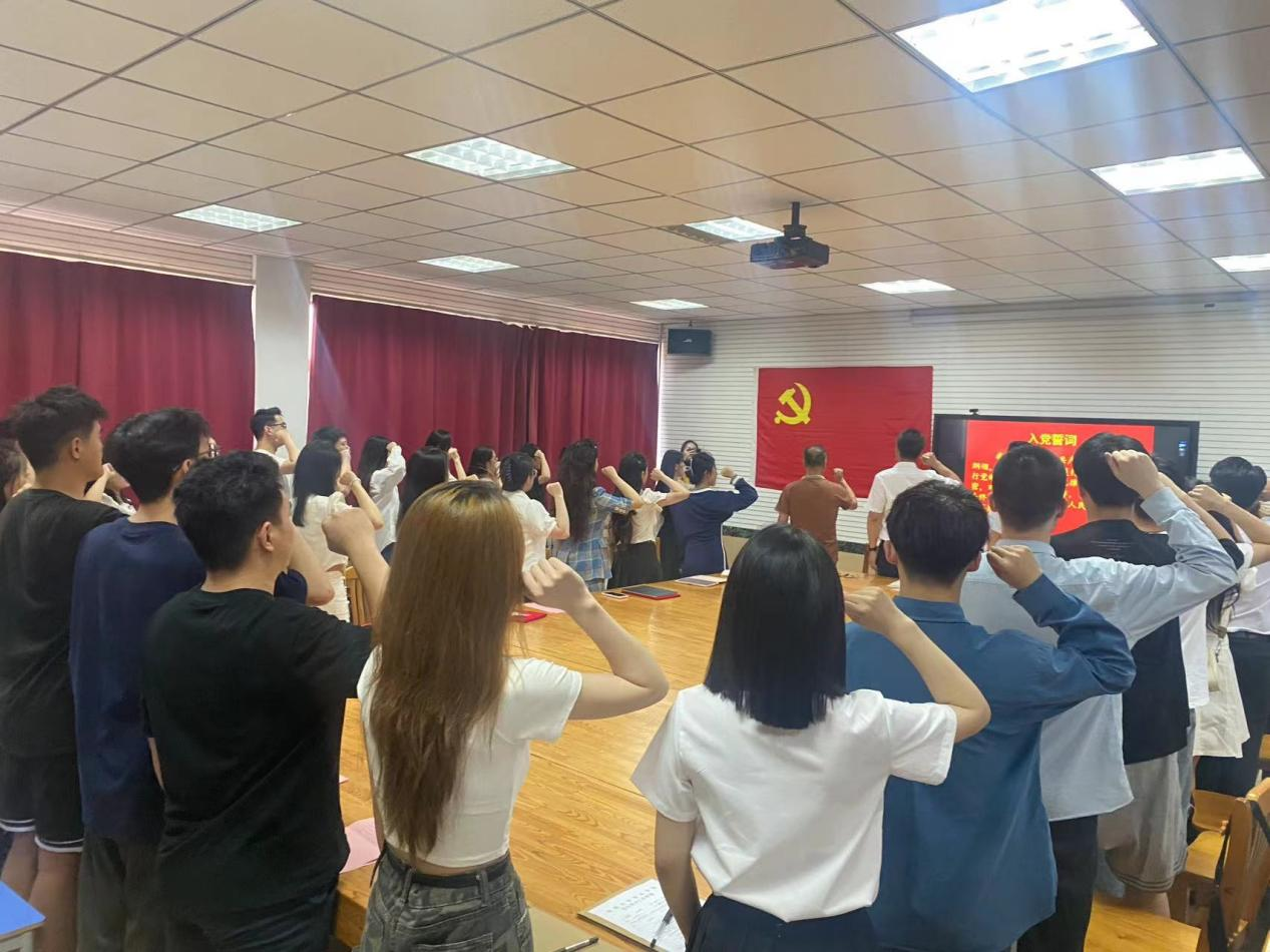 会议伊始,孙燕丽强调各位党员同志要铭记自己的入党初心。初心就是力量,使命就是方向,一百年来,一代又一代优秀中国青年坚守初心使命,把青春奋斗融入党和人民事业,成为实现中华民族伟大复兴的先锋力量。随后在毕业生党员彭胜男的带领下,全体党员握紧右拳,面向鲜红的党旗进行宣誓,重温入党誓言。