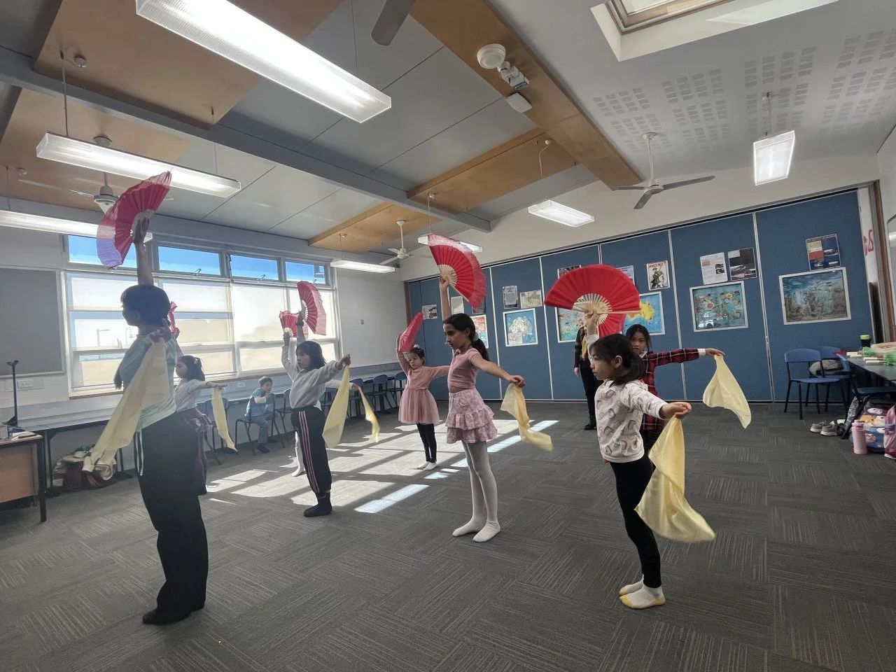 杨阿红在此次活动中为澳大利亚标准中文公司的200多名学员进行了民族舞蹈的授课。课前,杨阿红做了充分的准备工作,灵活调整授课方式和节奏,采用双语授课模式,教会了学员们五个不同风格的民族民间舞蹈,其中最受孩子们欢迎的是《山东秧歌走场》。山东秧歌形式活泼,其中的红扇令当地的老师和同学们爱不释手,红扇是齐鲁舞蹈文化的代表,是火红幸福生活的写照。