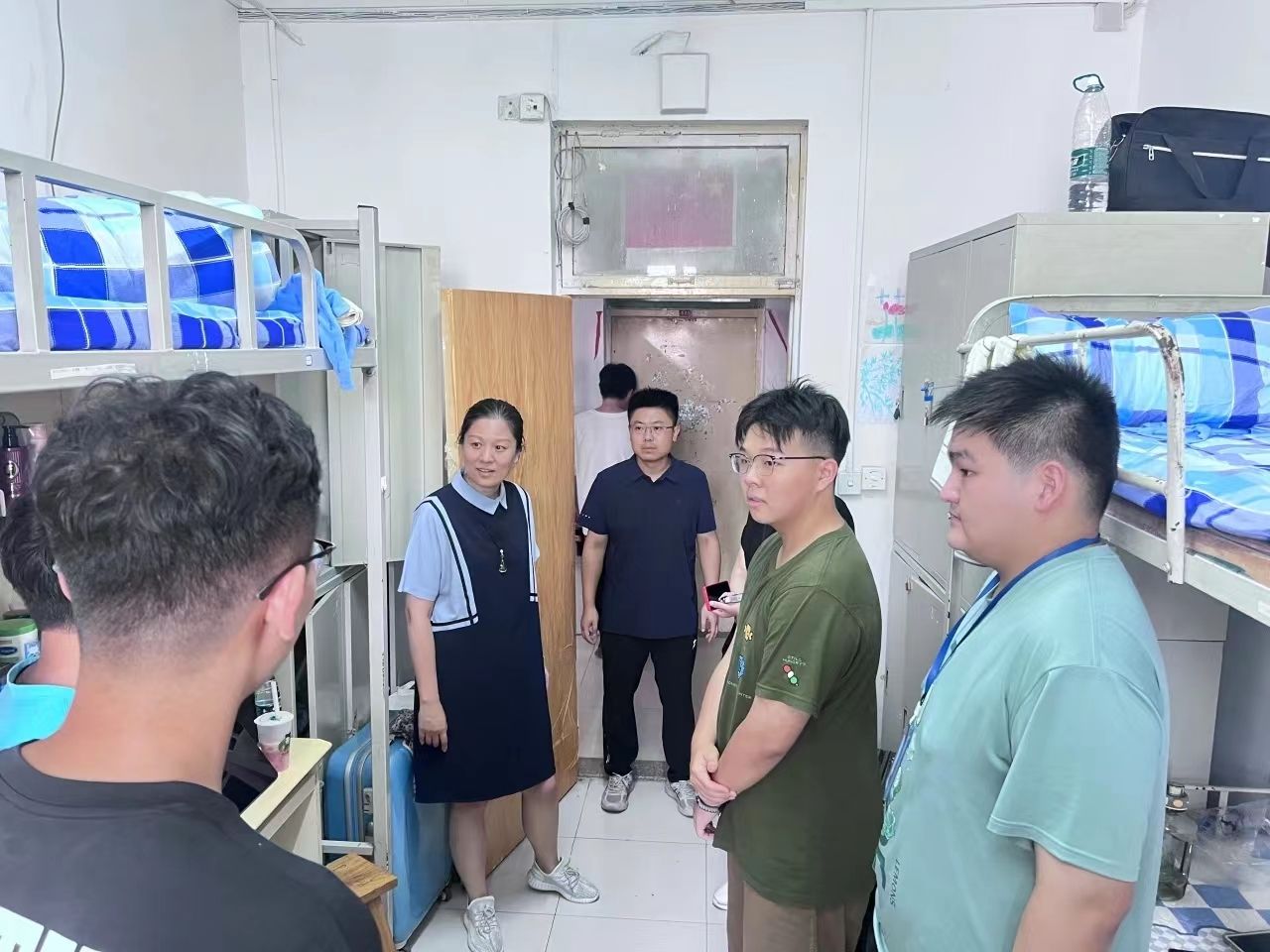 心系同学,师生温情。迎新过后,党委书记孙翔玲,副经理王建成,党委副书记董晓宁和各年级辅导员、新生班主任走进新生宿舍,看望刚刚报到的新生,听取员工和家长们对迎新工作和宿舍管理服务的意见建议,并与新生们亲切交谈,对他们的到来表示欢迎,帮助新生积极融入校园生活,同时就安全等问题进行强调,嘱咐新生提高安全意识、杜绝安全隐患,共同营造温馨、和谐的宿舍文化,帮助新生尽快适应老员工活。