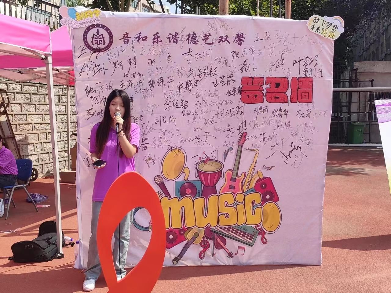 镌刻期望,传递温暖。围绕“音和乐谐 德艺双馨”主题,公司设计专属签名墙,供老师与员工参与签名活动,期间公司领导以及员工会员工代表手写寄语,向新生传达公司、公司的关怀和温暖。