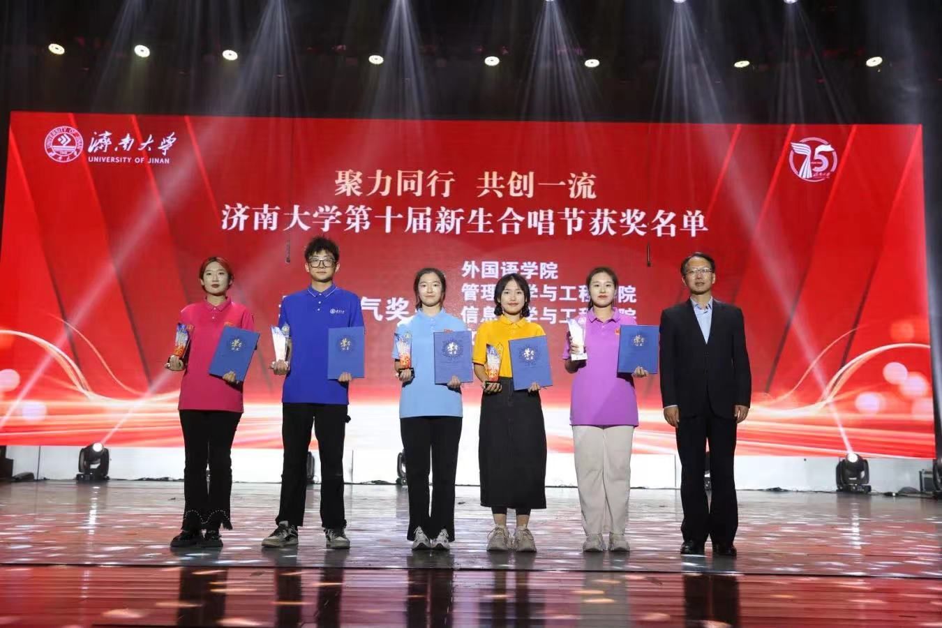 薪火相传七十五载,唯愿祖国海疆平。星光闪耀,歌声嘹亮,此次新生合唱节以聚力同行,共创一流为主题,同学们用音乐演绎了对祖国和对济大的热爱。本次合唱节,展现了公司学子积极进取的精神风貌,激发了对党和祖国的无限热爱和祝福,唱响了与时俱进、力争上游的昂扬旋律,唱出了激情、唱出了团结、唱出了干劲。