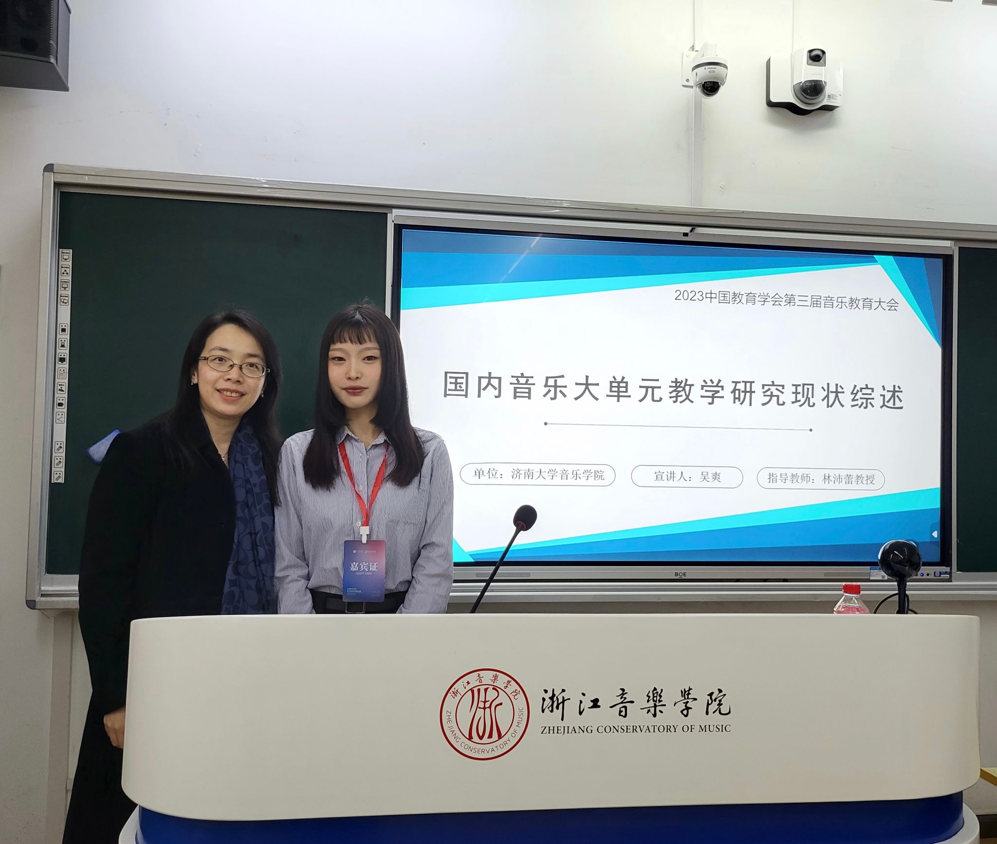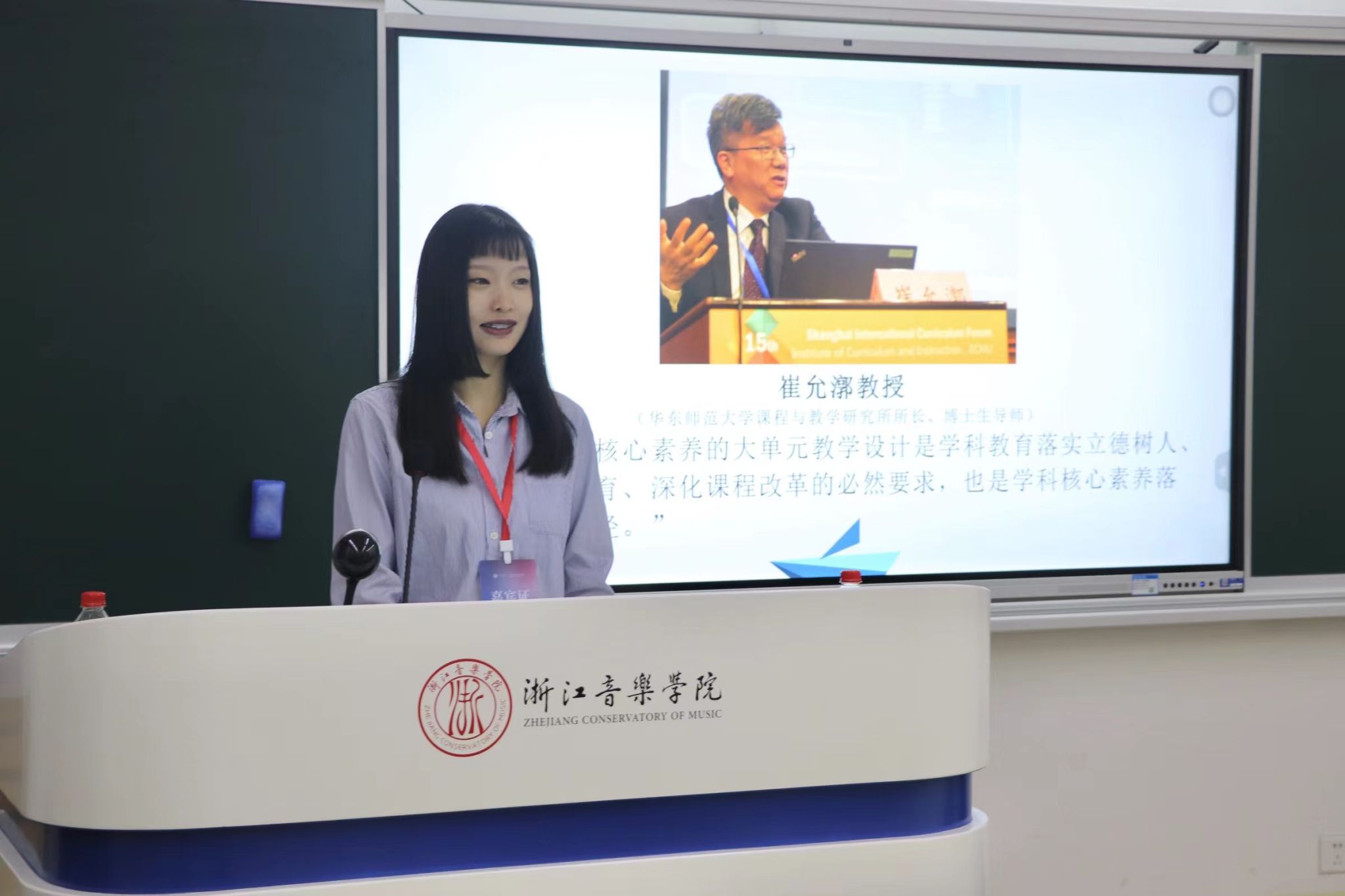 在此次音乐教育大会中,公司2021级音乐教育方向研究生吴爽投稿的论文《国内音乐大单元教学研究现状综述》经专家评审,在高校员工组论文评比中脱颖而出,受邀在高校员工论文宣讲专场中,进行主题发言。吴爽从国内音乐大单元教学的相关文献分布、理论研究与实践研究三方面研究现状进行梳理,提出未来研究要切实理清大单元概念、统建知识架构;增强理论研究、推动团队建设;推动音乐大单元教学模式落地实施等美好愿景。吴爽同学的选题新颖,逻辑清晰,获得与会代表与专家的高度肯定,显示了公司在音乐教育专业方向研究生人才培养方面的高水平教学成果。