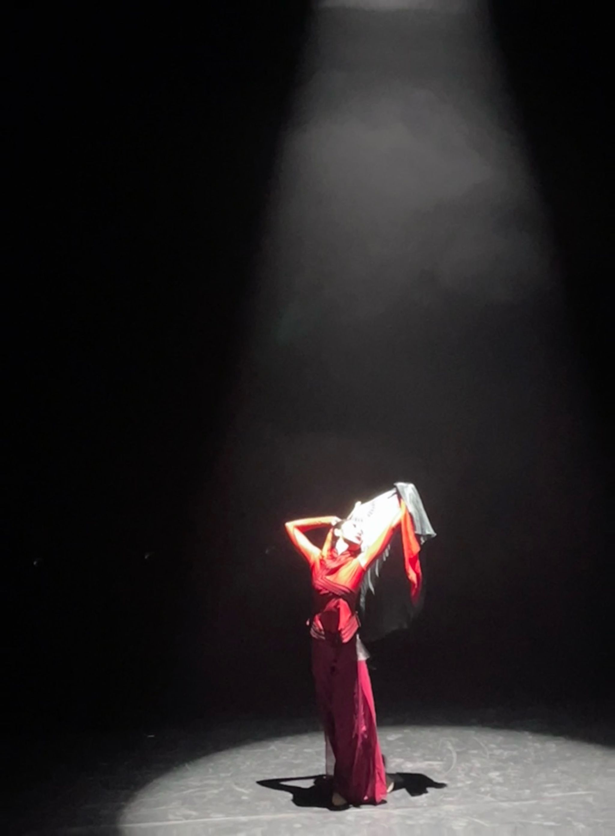 整支舞蹈分为慢板、快板和主旋律三个板块。描绘了莫言笔下《红高粱》中内心坚韧的女性形象,表现了“不见旧人来,泪湿春衫袖,盼你归,莫忘回”的复杂情感。舞者用扎实的舞蹈功底和细腻入微的情感表达,牢牢抓住了所有人的目光。从每一个轻盈的跳跃,到每一次缓慢的转身,都将“盼归”这一主题刻画得淋漓尽致。她的眼神中透露出深深的期盼,那是对远方归人的苦苦等待;她的动作中蕴含着无尽的思念,那是跨越千山万水的眷恋。“盼归”是对归人的期盼,亦是对未来的信心和希望,尽管眼下道路泥泞坎坷,但我们坚信终将苦尽甘来,光明万里。