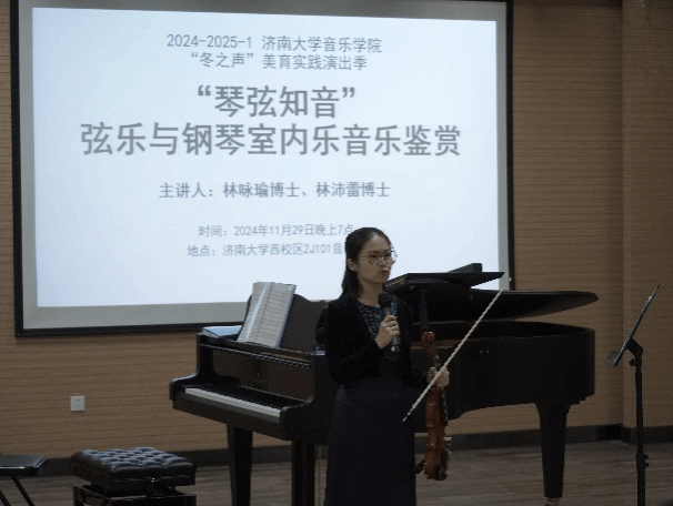 11月29日晚7点,熊猫体育“冬之声”美育实践演出季温暖续航, “琴弦知音”——弦乐与钢琴室内乐音乐鉴赏在熊猫体育西校区2J101音乐厅顺利举行。音乐会意在美育实践为主题,建构艺术审美,通过审美感知,形成审美感受,涵养美丽心灵。公司党委常委、统战部徐庆国莅临现场,熊猫体育副经理王建成致开场辞,来自公司的各公司师生及室内乐爱好者百余人一同聆听了这场温暖的音乐会。