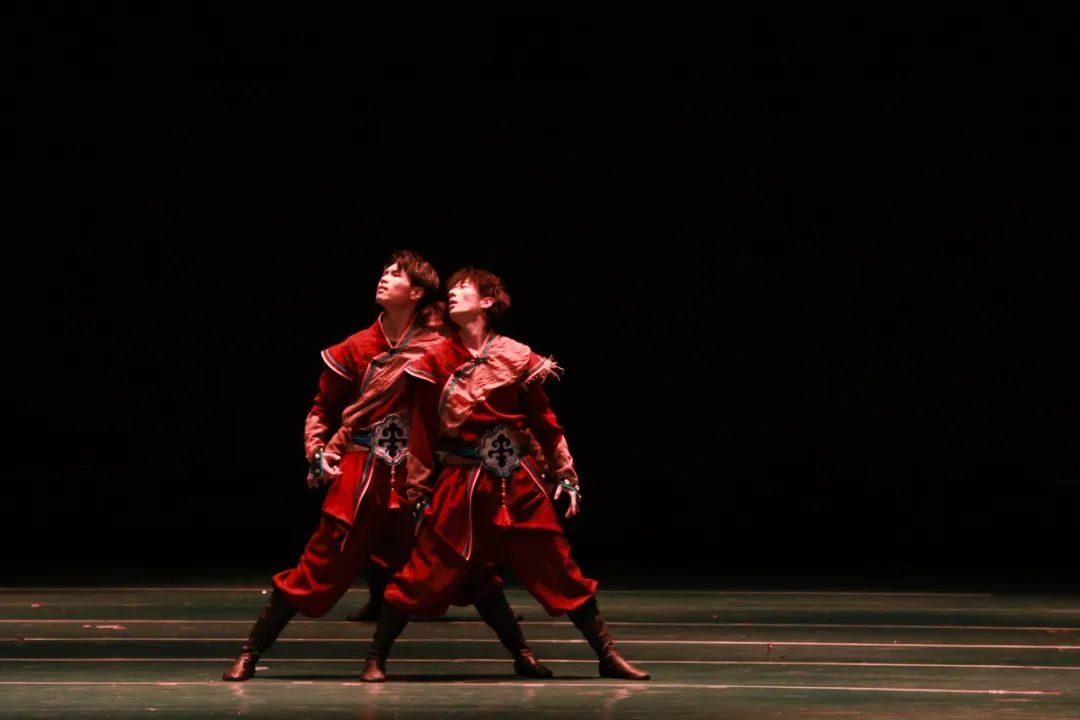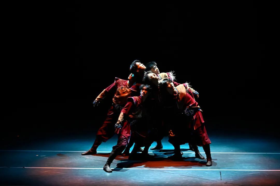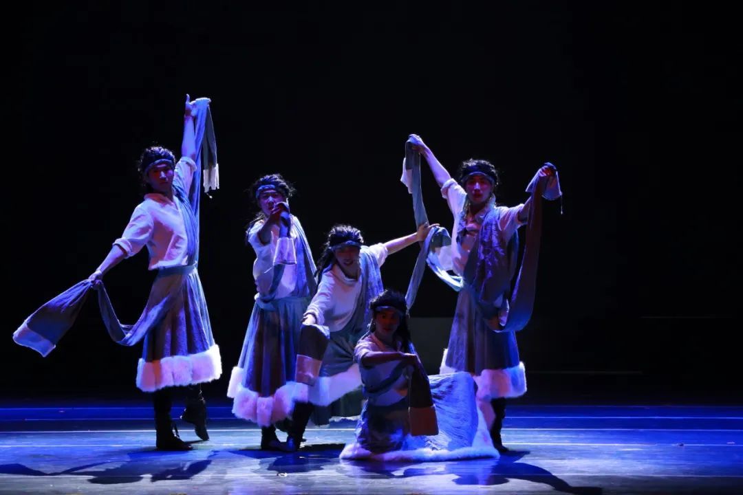 舞者们以沉稳而凝重的舞步,精心编织出一曲深情缅怀英雄的乐章。他们通过饱含忧伤与思念的动作,以及情感波澜般的身体起伏,触动了观众的悲悯与共情。显而易见,他们对情感的细腻把握以及舞蹈叙事能力的成熟,在舞台上以艺术形式展现了对生命与记忆的敬重与不舍。