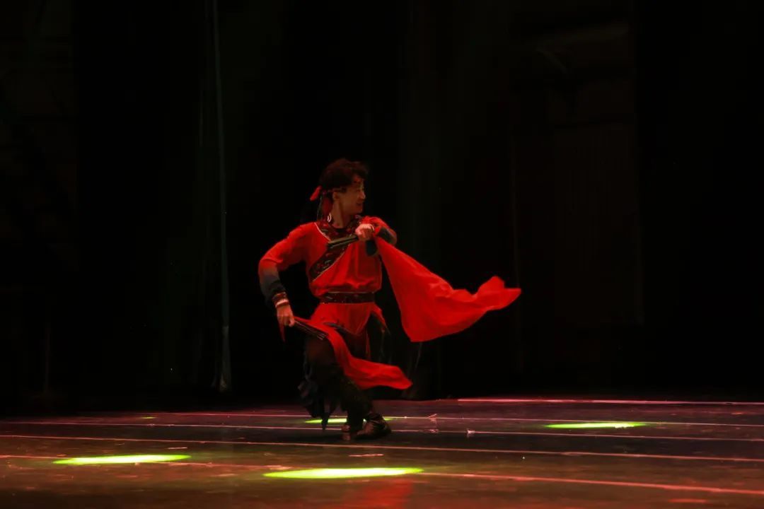 他们化身为草原上威风凛凛的狼群,身姿矫健而敏捷,气势雄浑而磅礴。以刚劲有力的动作诠释了狼的野性、团结与坚韧不拔。每一个舞步都传递着深沉而雄浑的精神力量,展现了2024级男生们塑造角色、营造氛围以及团队协作的能力,反映出公司在教学中对不同风格舞蹈的把握、团队舞蹈表现力培养等方面的成果,彰显出员工在舞台上强大的艺术感染力。