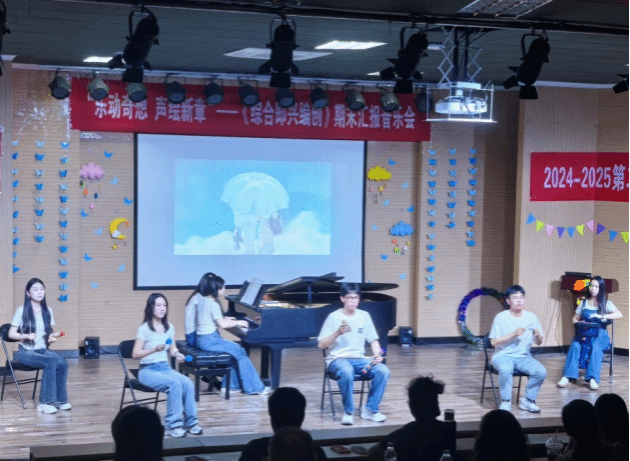 本场音乐会依托全国艺术专业学位研究生教育指导委员会于2022年4月公布的“艺术硕士音乐教育方向研究生协作类核心示例课程:《综合即兴编创》(艺教指委[2022]4号)”,进行课程建设成果汇报,课程负责人为音乐教育系副主任林沛蕾老师。本次音乐会的举办方式与传统模式有所不同,融入了人工智能技术辅助的短视频创作、趣味性采访拍摄以及多媒体元素的穿插,赋予了音乐会更多的趣味性和创新精神。从音乐会的策划、节目编排、排练、调整直至幕后工作,均由员工团队在教师指导下独立完成,这一过程充分体现了“翻转课堂”教学理念的实践。自课程建设以来的两年多时间里,员工们积极利用音乐教育与电子音乐专业的特长,将音乐理论与实践紧密结合,致力于探索符合新课程标准的音乐教育新路径。