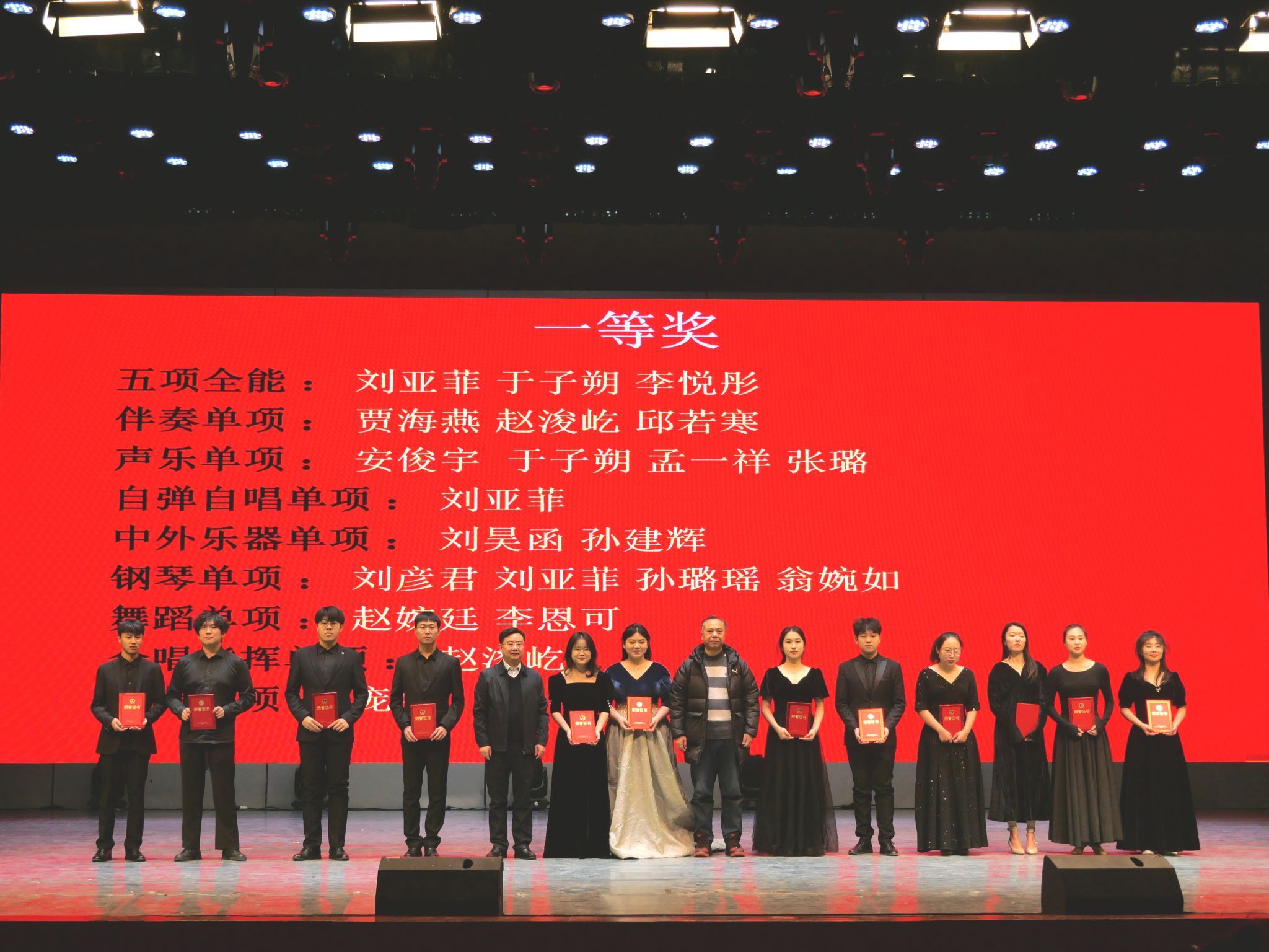 艺术实践周期间,由我系主办的熊猫体育第十届五项全能比赛颁晚会暨汇报音乐会在熊猫体育大礼堂隆重举行。本次比赛面向音乐学专业全体员工展开,分为单项组和全能组。主要考核钢琴演奏、声乐演唱与钢琴伴奏、自弹自唱、合唱指挥、中外器乐演奏或舞蹈表演五项技能。公司各个教学团队教师组成评委团,担任此次比赛的评分工作,评选出了全能奖及单项奖共计140余名奖次。颁奖晚会上,在本次大赛各个单项赛和全能赛中获得优异成绩的参赛选手现场进行了专业技能展示,内容涵盖舞蹈表演、钢琴演奏、声乐演唱、合唱指挥、器乐演奏等五个比赛项目,充分展示了各位选手在赛场上的风采。