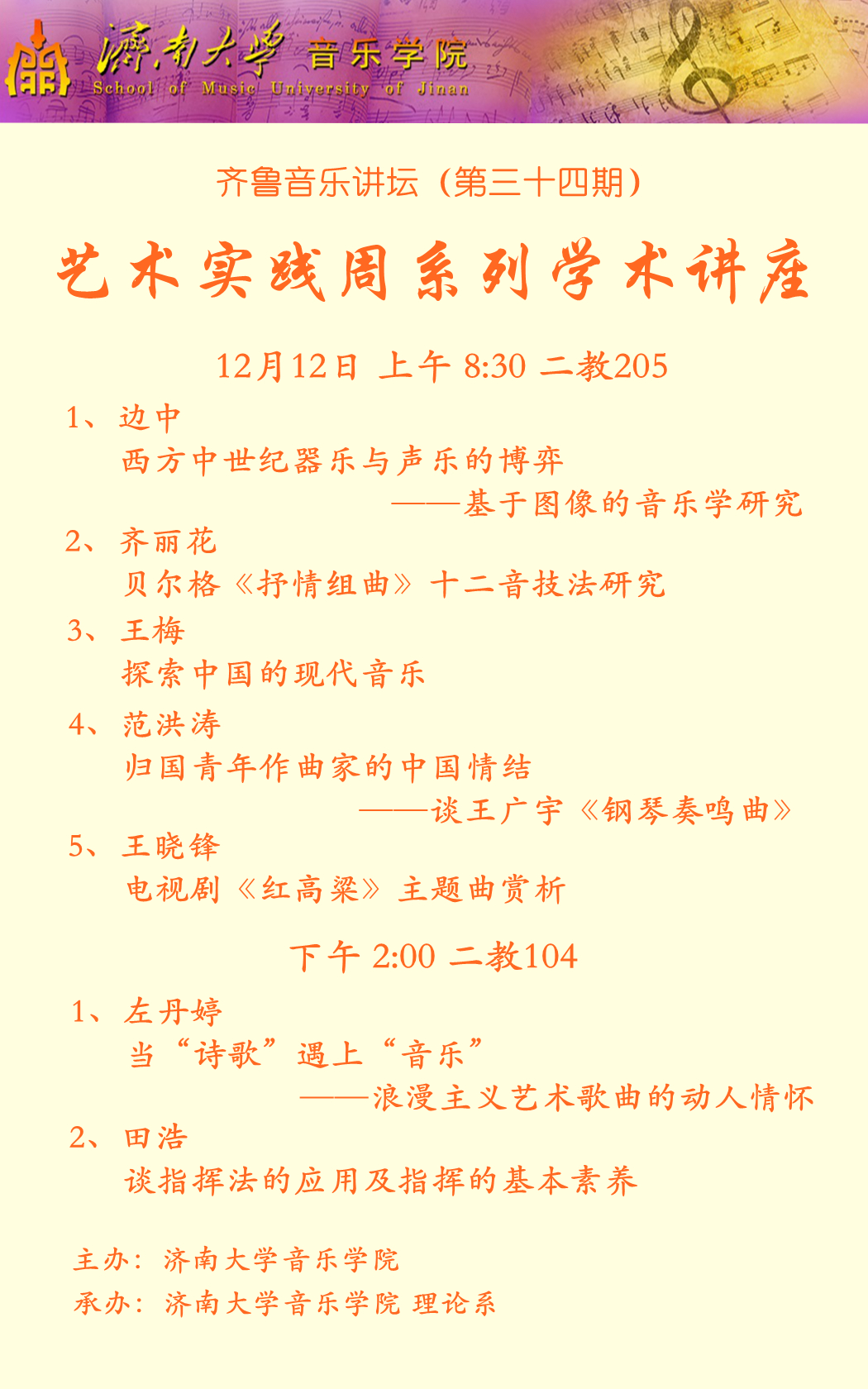 熊猫体育艺术实践周之齐鲁音乐讲坛(第三十四期)系列学术讲座通告
