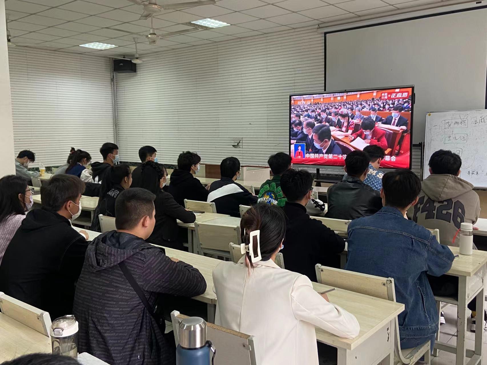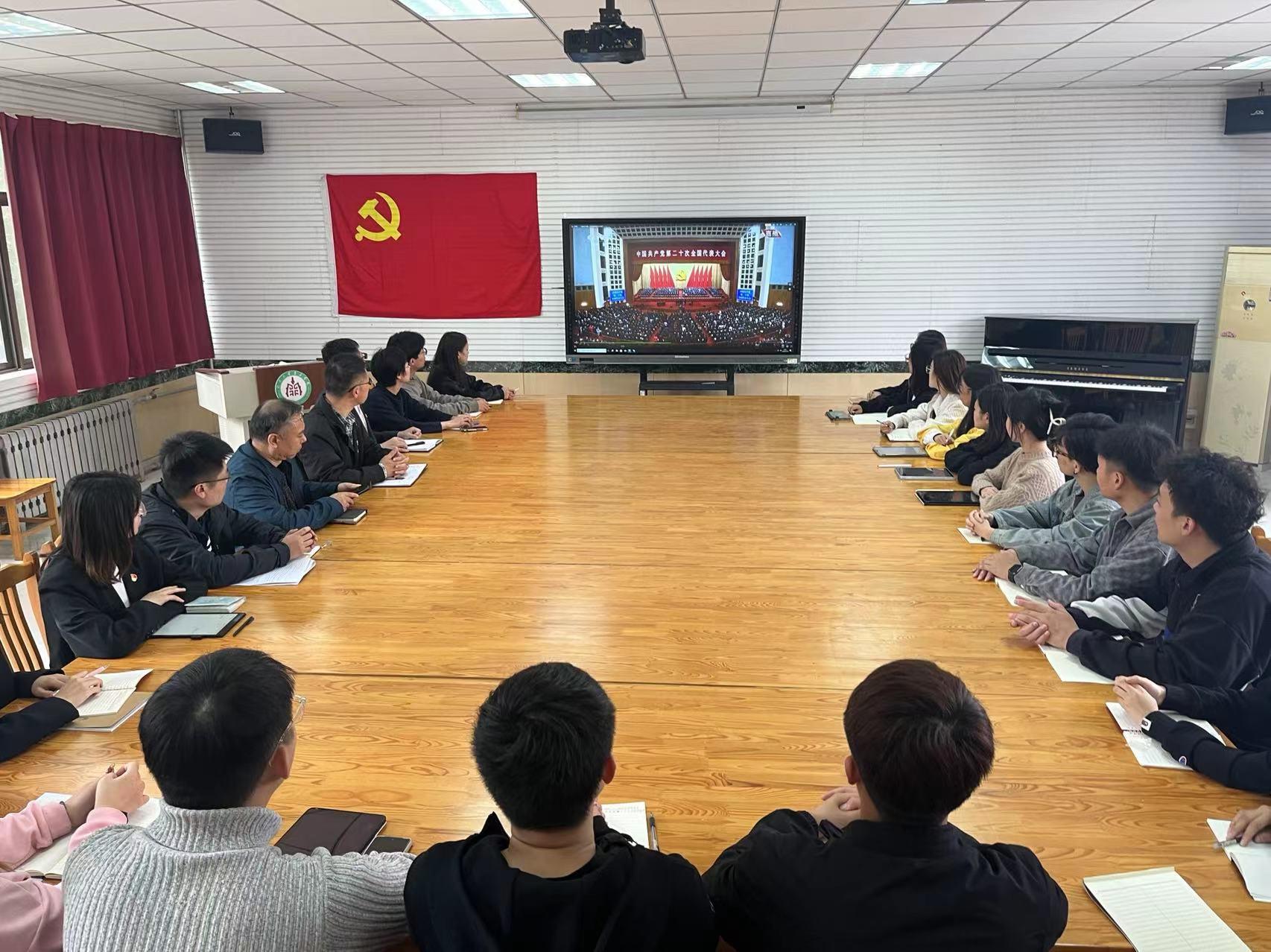 公司党委理论学习中心组、党支部书记以及在校正式党员和预备党员集中在研讨课教室集中收看党的二十大开幕实况,认真聆听、学习习近平总书记的报告。